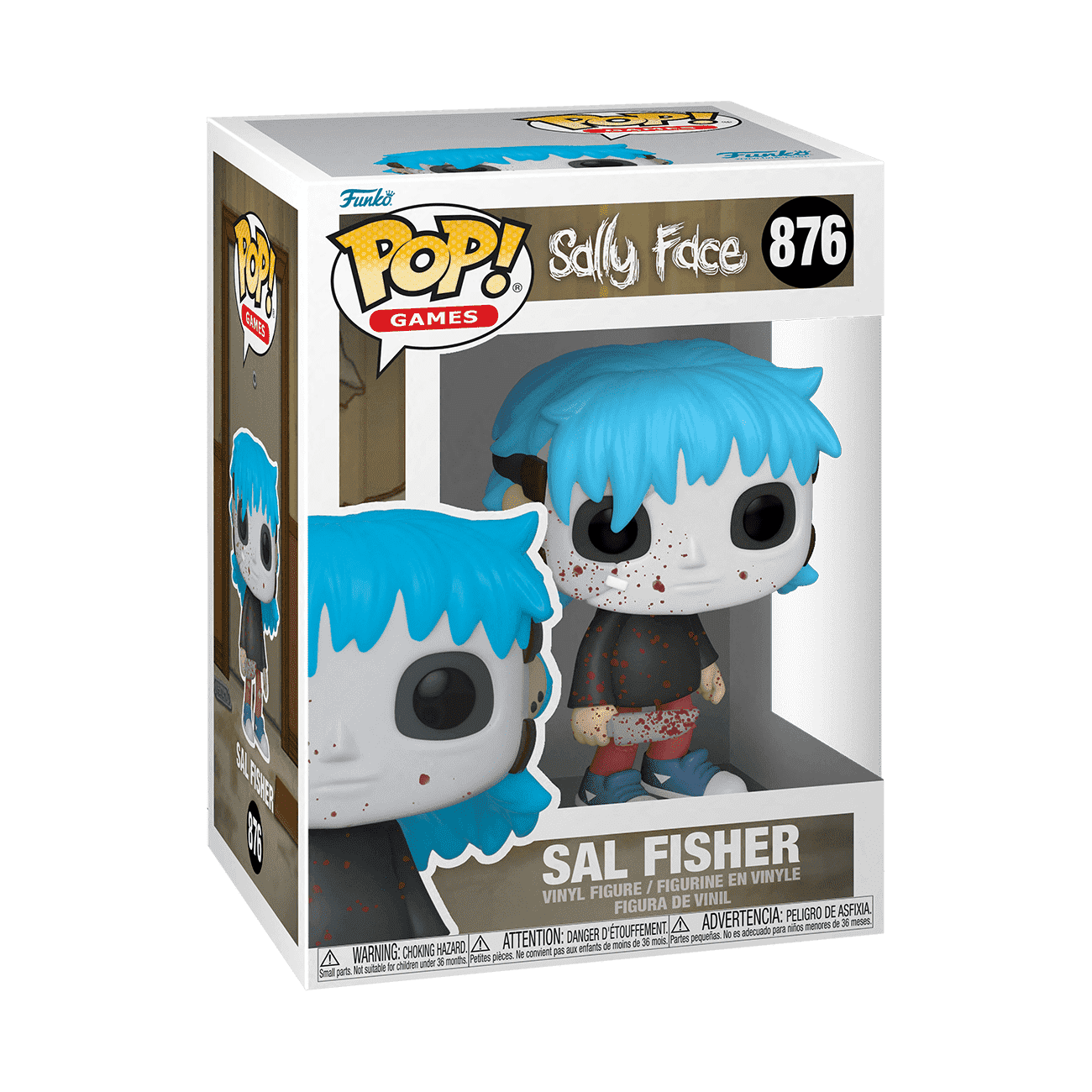 Pop! Sal Fisher is here to unravel the dark mysteries of your horror and video game collections. Don't let his prosthetic face, knife, or bloodied appearance scare you away. Sal is determined to uncover the sinister truth behind the recent murders by joining your Sally Face collection. Vinyl figure is approximately 4 in (10.2 cm) tall.