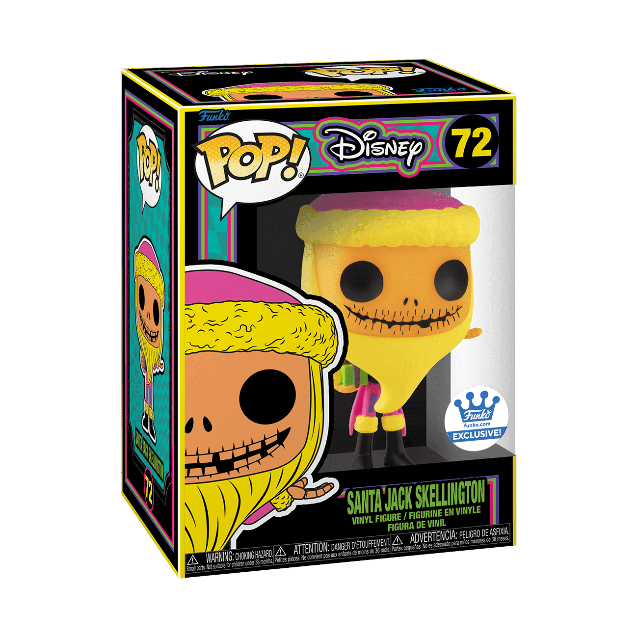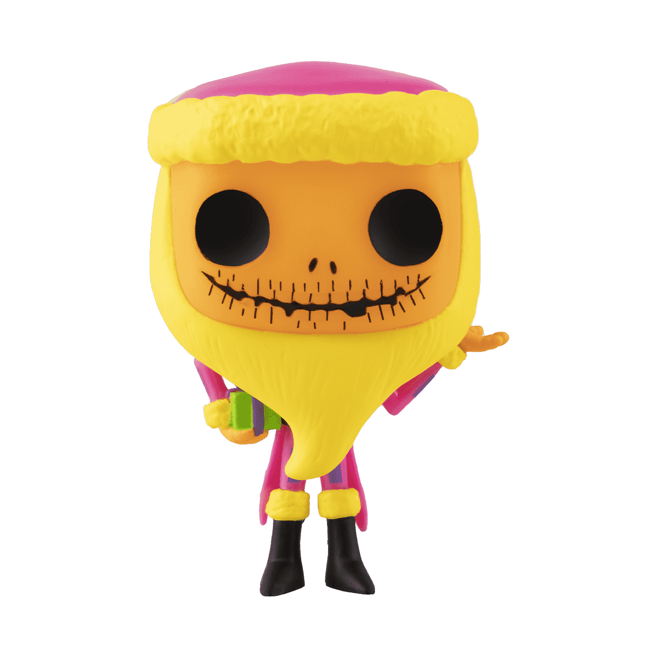 Welcome to Halloween Town! …Or is it Christmas Town? The Funko exclusive Pop! Santa Jack Skellington is here to bring joy to any holiday. Dressed in Santa’s traditional garments, Jack brings presents to share with his friends. With vibrant coloring designed to shine brightly under black light, this Pop! is sure to inspire a frightfully festive atmosphere in your The Nightmare Before Christmas collection. Vinyl figure is approximately 4.5 in (11.4 cm) tall.