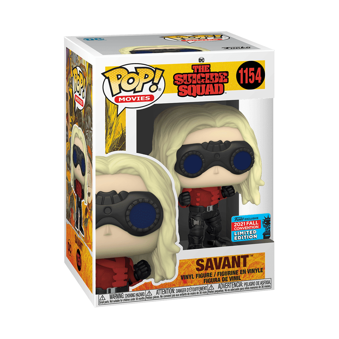Complete your DC collection of The Suicide Squad and keep close tabs on your favorite villains starting with the 2021 NYCC exclusive Pop! Savant. Vinyl figure is approximately 3.75 in (9.5 cm) tall.