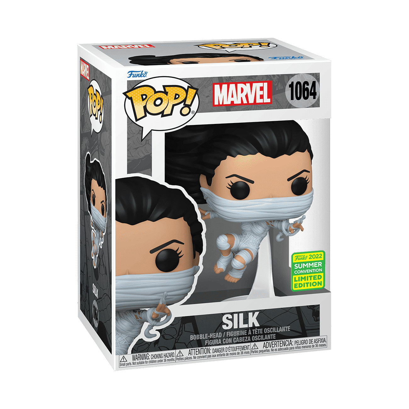 Wrap up your Marvel collection with Pop! Silk! Team up with 2022 San Diego Comic-Con exclusive Pop! Silk to defend against evil forces and build a super-strong web of alliances. Vinyl bobblehead is approximately 4.44 in (11.3 cm) tall.