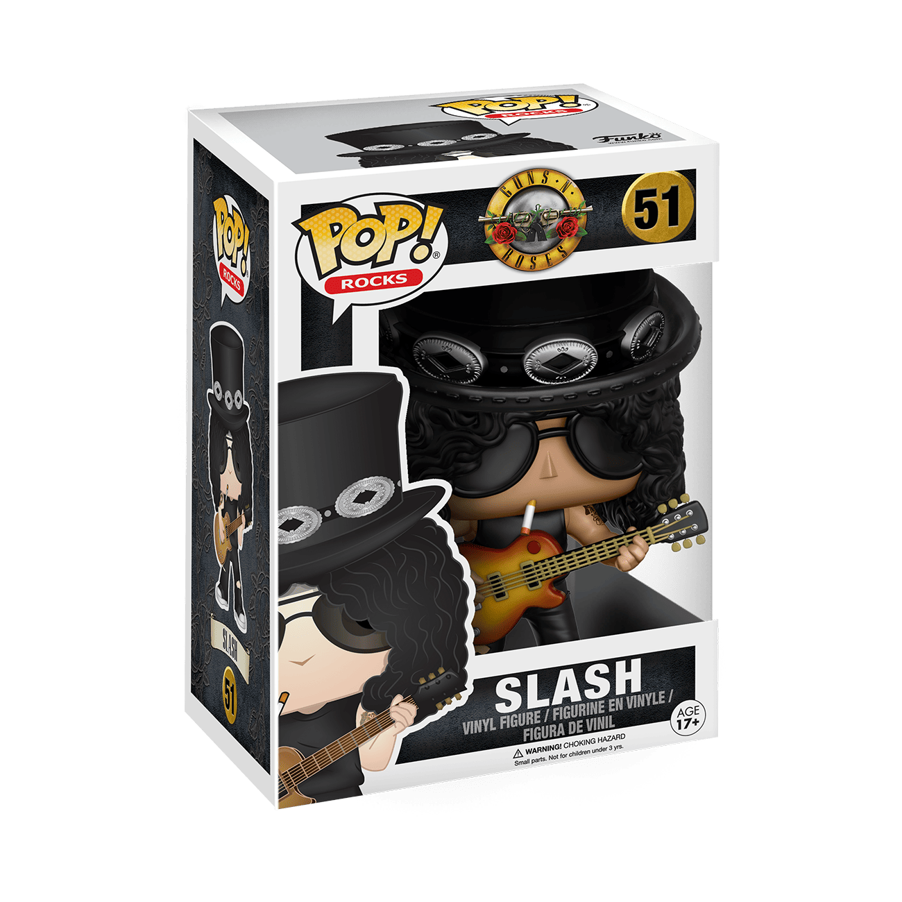 Guns N' Roses are about to crash the stage on your music collection with this Pop! of the legendary guitarist Slash. Collectible stands approximately 3.75 in (9.5 cm) tall.