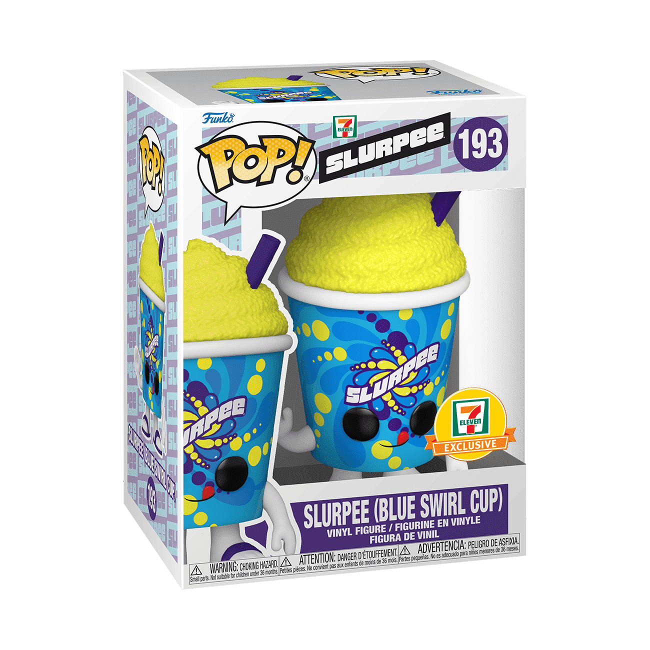 Drink in a cool rush of sweet flavors from a 7-Eleven SlurpeeĀ® in a brand-new way! Exclusive Pop! Slurpee, in the Blue Swirl Cup, is ready to come home with you. This delectable frozen treat, in Pop! form, is delightfully playful, topped off with a tempting yellow swirl. Savor every last drop, without the brain freeze. Collect them all! Vinyl figure is approximately 4 in (10.2 cm) tall.