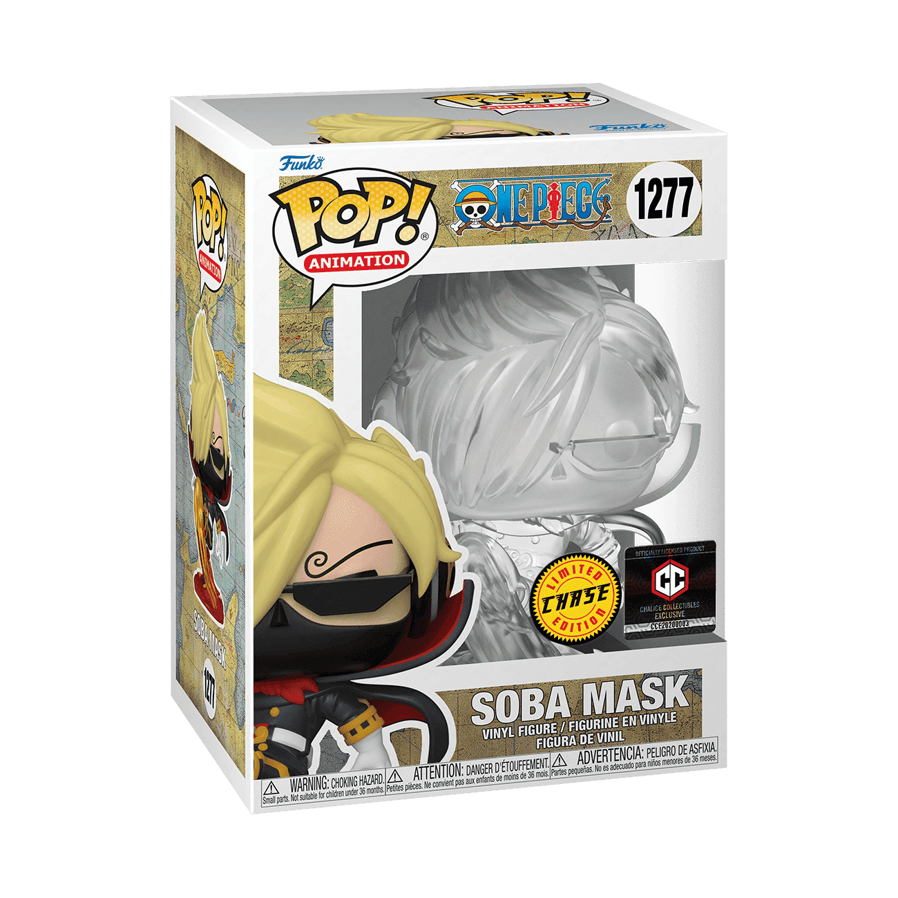 Sanji is the cook of the Straw Hat Pirates but he's still a skilled fighter. This warrior cook has donned the Germa 66 suit and declared himself Soba Mask. Help Pop! Soba Mask find Luffy and his crew by bringing him into your One Piece collection. There’s a 1 in 6 chance you may find the translucent chase of invisible Pop! Soba Mask. Vinyl figure is approximately 5.1 in (13 cm) tall.