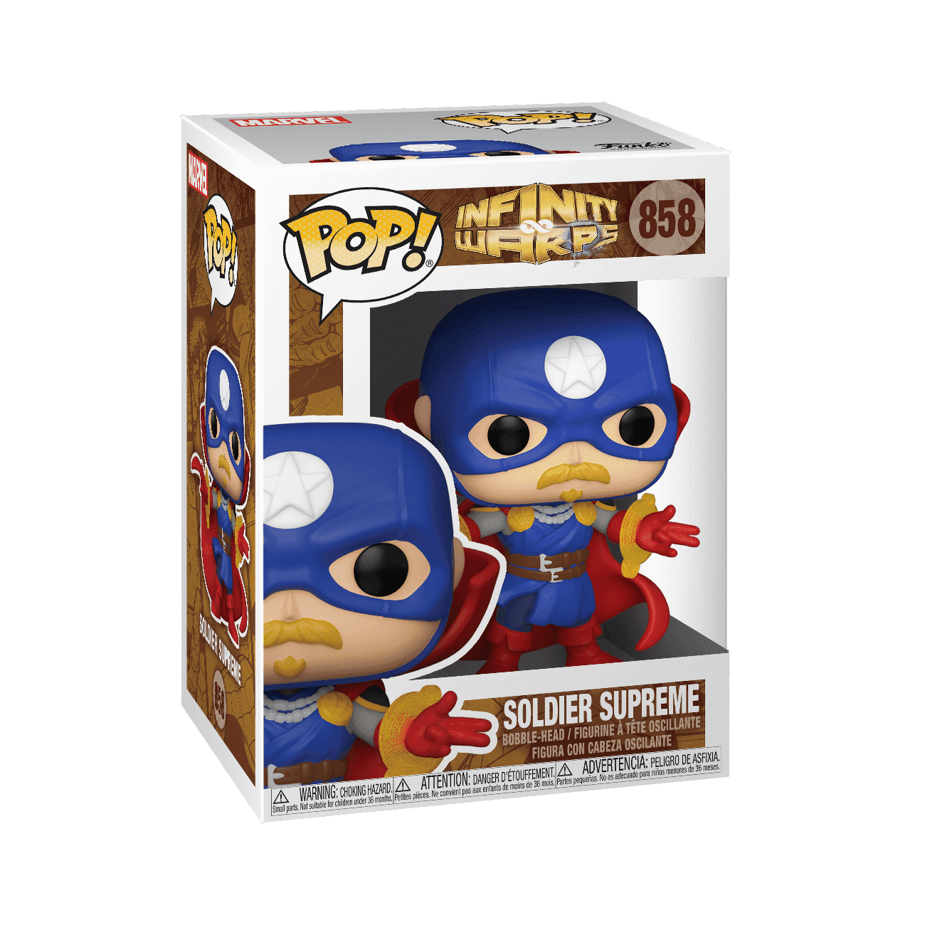 Infinity Warps create all new heroes and villains by fusing two characters together. Pop! Soldier Supreme imagines Captain America with the mystical might of Doctor Strange! Vinyl bobblehead is approximately 3.75 in (9.5 cm) tall.