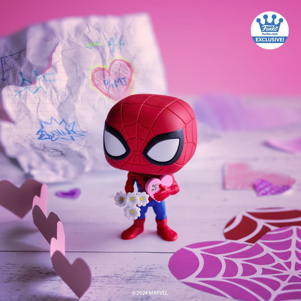 Your favorite web-slinger has arrived to tug on your heartstrings as this exclusive Valentine’s Day Pop! Spider-Man! With flowers and a box of chocolates in hand, he is ready to win the heart of MJ in your Marvel collection. Vinyl bobblehead is approximately 3.75 in (9.5 cm) tall.