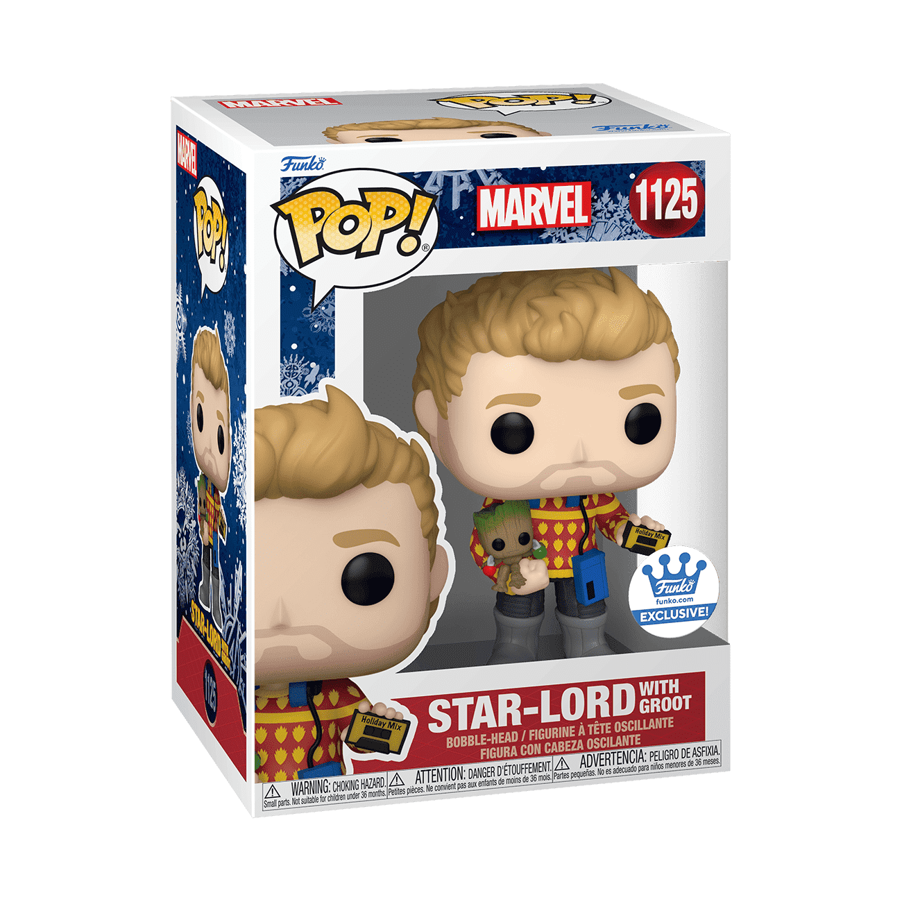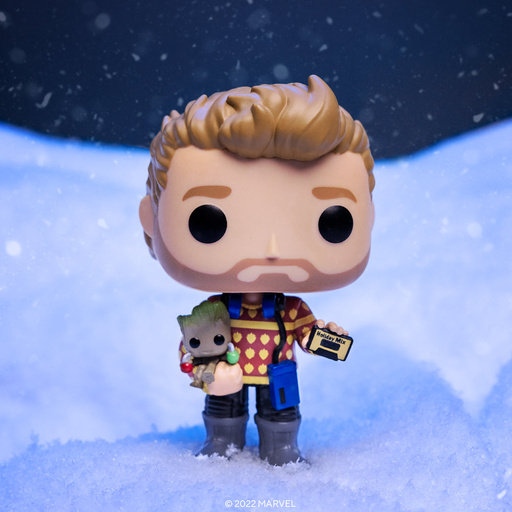 Mix in some holiday hi jinks with this Funko-exclusive Pop! Star-Lord and Groot from Marvel Studios’ The Guardians of the Galaxy Holiday Special. Pop! Star-Lord holds Groot in one hand and an awesome Holiday Mix tape in the other hand. Deck the galaxy this holiday season & unite the members of Marvel Studios’ The Guardians of the Galaxy Holiday Special for action-packed adventures through the cosmos. Vinyl bobblehead is approximately 4.14 in (10.5 cm) tall.