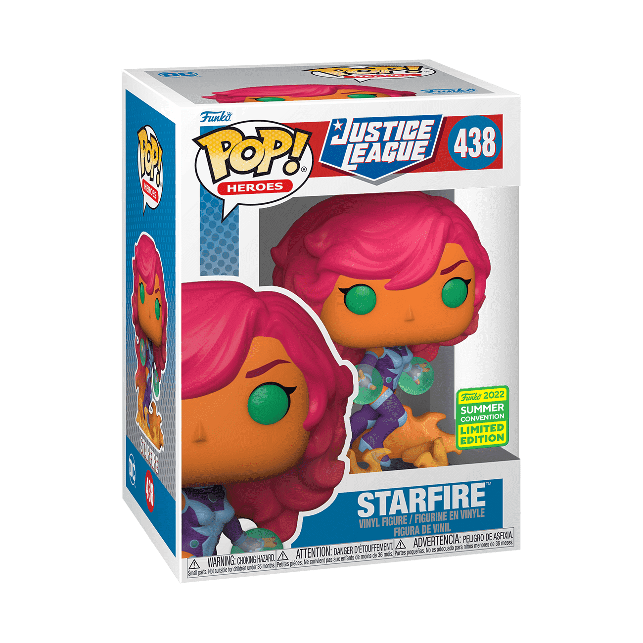 From the distant planet of Tamaran, Starfire harnesses supernatural powers. Add the 2022 San Diego Comic-Con exclusive Pop! Starfire your DC Heroes collection for sure-fire adventure! Vinyl figure is approximately 4 in (10.2 cm) tall.