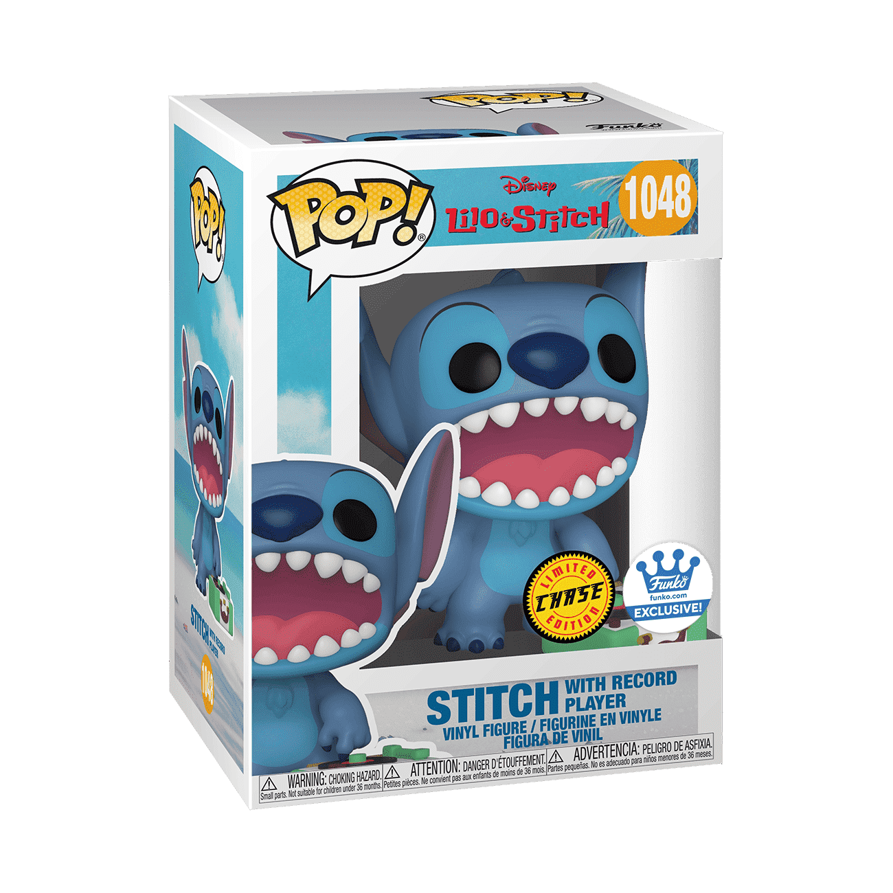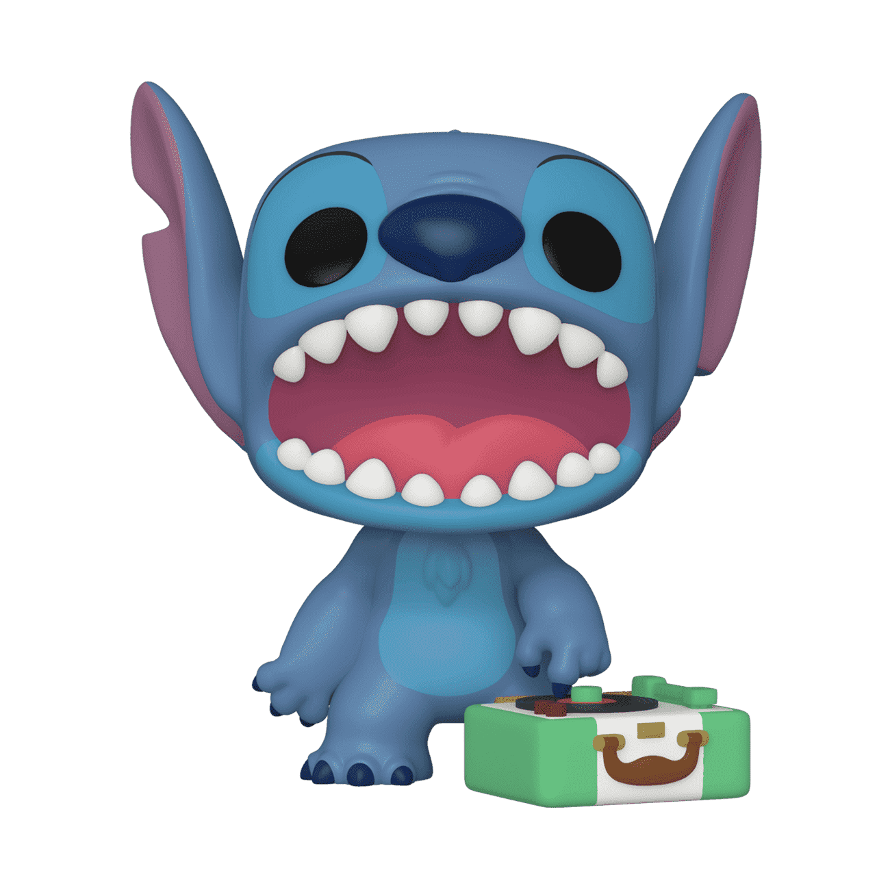 Bring the family together in your Disney Lilo & Stitch collection with a Pop! Stitch with record player. Can you hear the music? There's a 1 in 6 chance you may find the chase variant of Stitch with his mouth open. Vinyl figure is approximately 3.75 in (9.5 cm) tall. Please note: Chase variants are shipped at random. Receiving a chase with purchase is not guaranteed. Customer may purchase up to two pieces per household. Please note this item does not qualify for discounts or promotions.