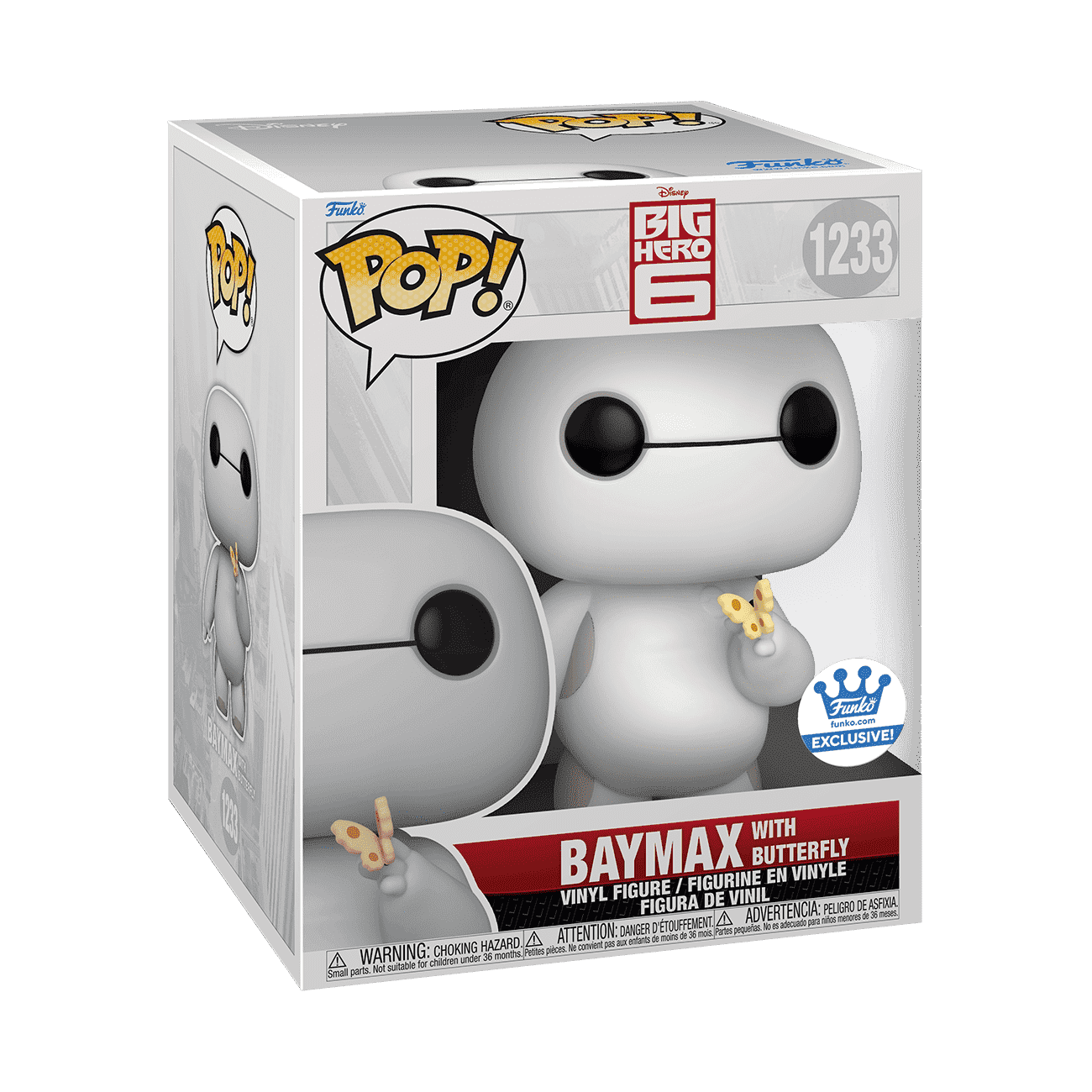 Put Baymax in charge of your collection’s wellbeing as a Pop! Super figure. Funko-exclusive Pop! Baymax with Butterfly is programmed to offer optimal care and will only rest when patients are satisfied. Will you find the diamond collection chase as you bring home your own personal healthcare companion robot? Fly away on your own adventures with Pop! Baymax and expand your Disney collection. Vinyl figure is approximately 6 in (15.2 cm) tall.