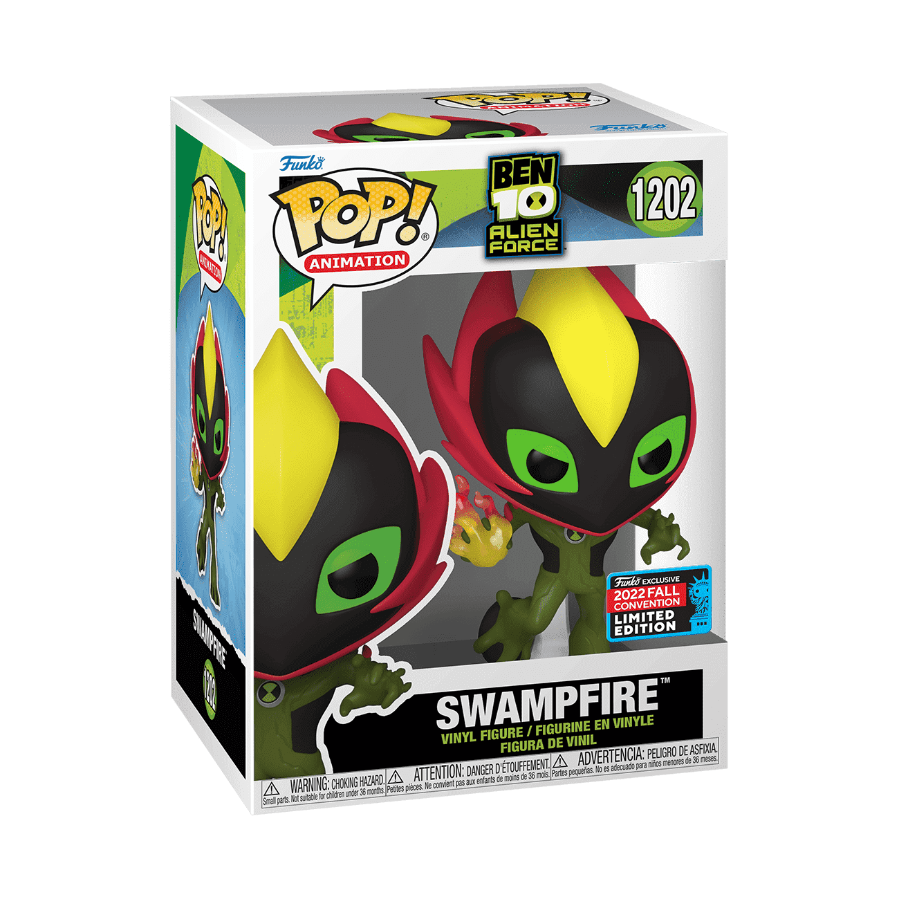 Activate your Omnitrix™ and unleash out-of-this-world fun with Ben Tennyson as Pop! Swampfire. Swampfire, from Methanos, is a humanoid, plant-like creature with a strong-smelling presence and an ability to defend against evil alien forces. This 2022 New York Comic-Con exclusive Pop! Swampfire wants to take root in your Pop! Animation set. Blast off to adventures and expand your Ben 10 collection. Vinyl figure is approximately 4.70 in (11.9 cm) tall.