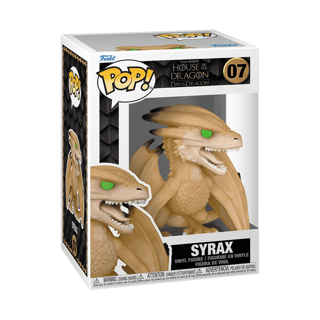 Welcome to the Dance of Dragons! The pursuit of legacy begins, and Pop! Syrax, Princess Rhaenyra’s dragon, wants to land in your Game of Thrones collection. Help unite her with Princess Rhaenyra and grow your Game of Thrones: House of the Dragon collection on a grand scale. Vinyl figure is approximately 3.77 in (9.6 cm) tall.