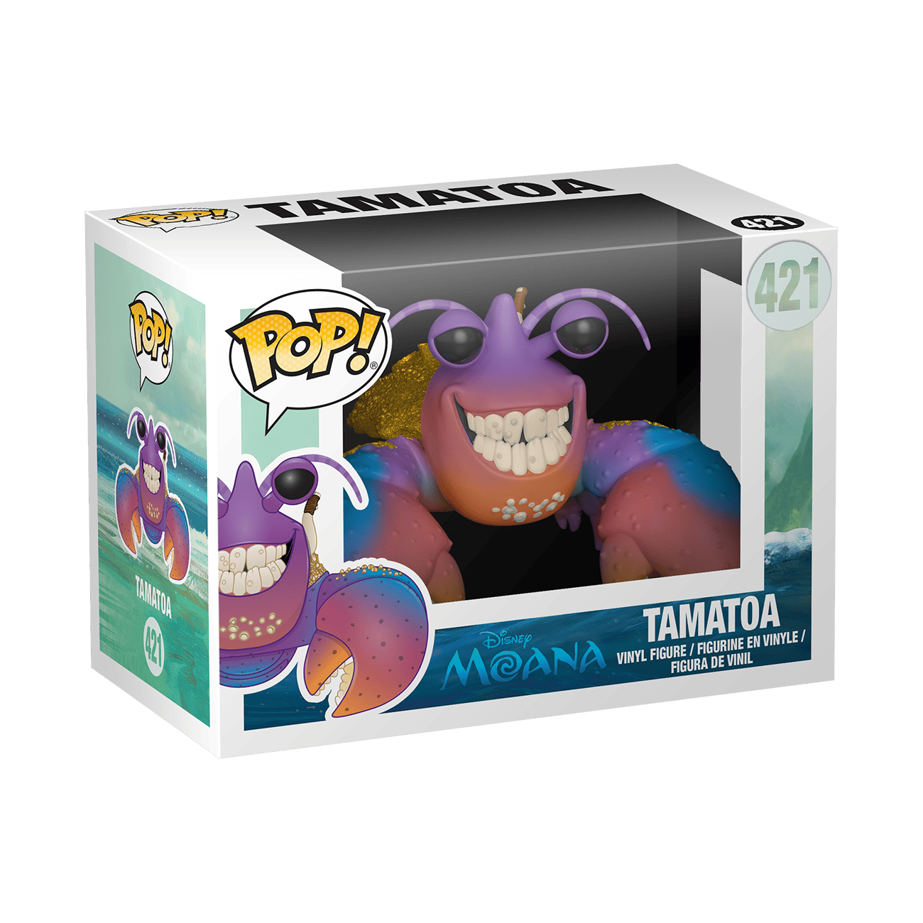 Add an sparkly element to your Disney collection with this Moana Pop! of Tamatoa. His shell is glittery and he is great at protecting the treasures of your Disney collection. Collectible stands 3.75 in (9.5 cm) tall.