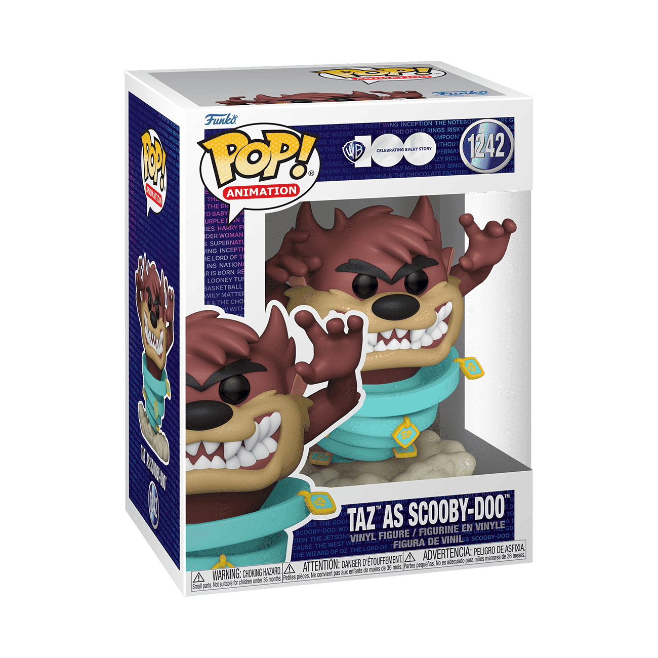 Scooby Snacks™ might not be enough to calm Pop! Taz™ as Scooby-Doo™ as you search for clues. This classic Looney Tunes character has dressed as your favorite mystery-solving, talking dog to celebrate the Warner Bros 100th Anniversary. Expand your Pop! Animation collection with this costumed collectible. Vinyl figure is approximately 4.25 in (10.8 cm) tall.