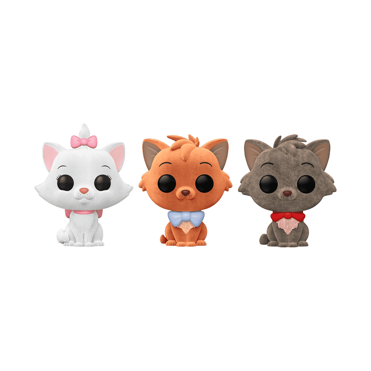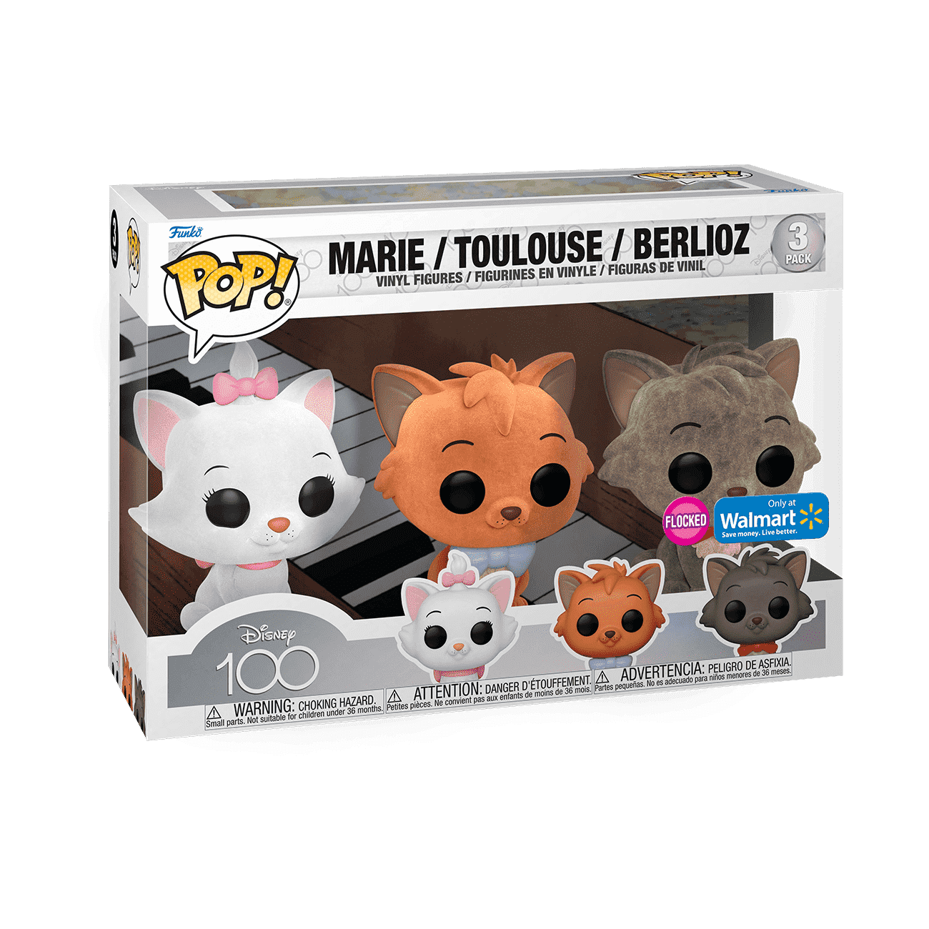 Everybody wants to be friends with Duchess’s three adorable kittens! Celebrate Disney’s 100th Anniversary by welcoming Pop! Marie, Pop! Toulouse, and Pop! Berlioz into your home. Complete your The Aristocats collection with this exclusive, flocked 3-pack. Vinyl figures are approximately 3 to 3.4 in (8.6 cm) tall.