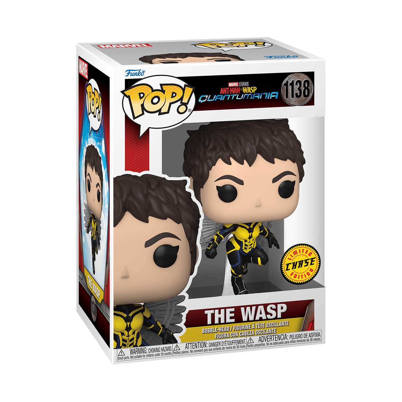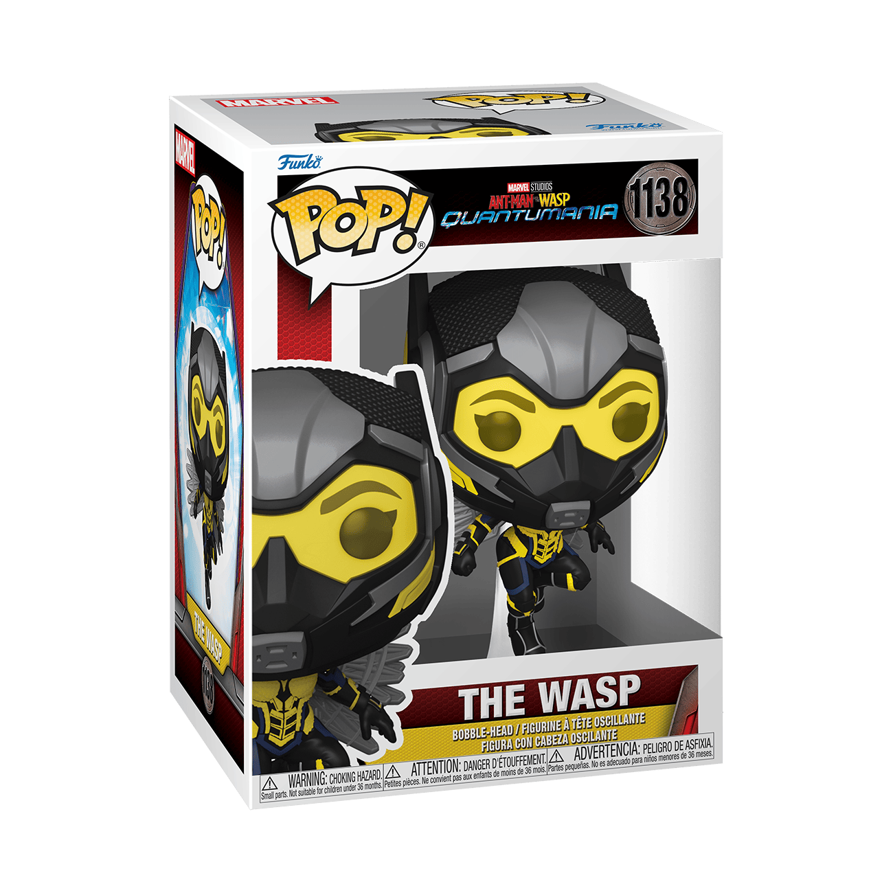 Explore the Quantum Realm with Pop! Wasp from Marvel Studios’ Ant-Man and The Wasp: Quantumania. Anticipate a universe of adventures as Pop! Wasp helps protect against evil, face difficult odds, and push beyond what was previously believed possible. There’s a 1 in 6 chance you may find the chase of Pop! Wasp without her helmet. Collect them all. Vinyl bobblehead is approximately 4.32 in (11 cm) tall.