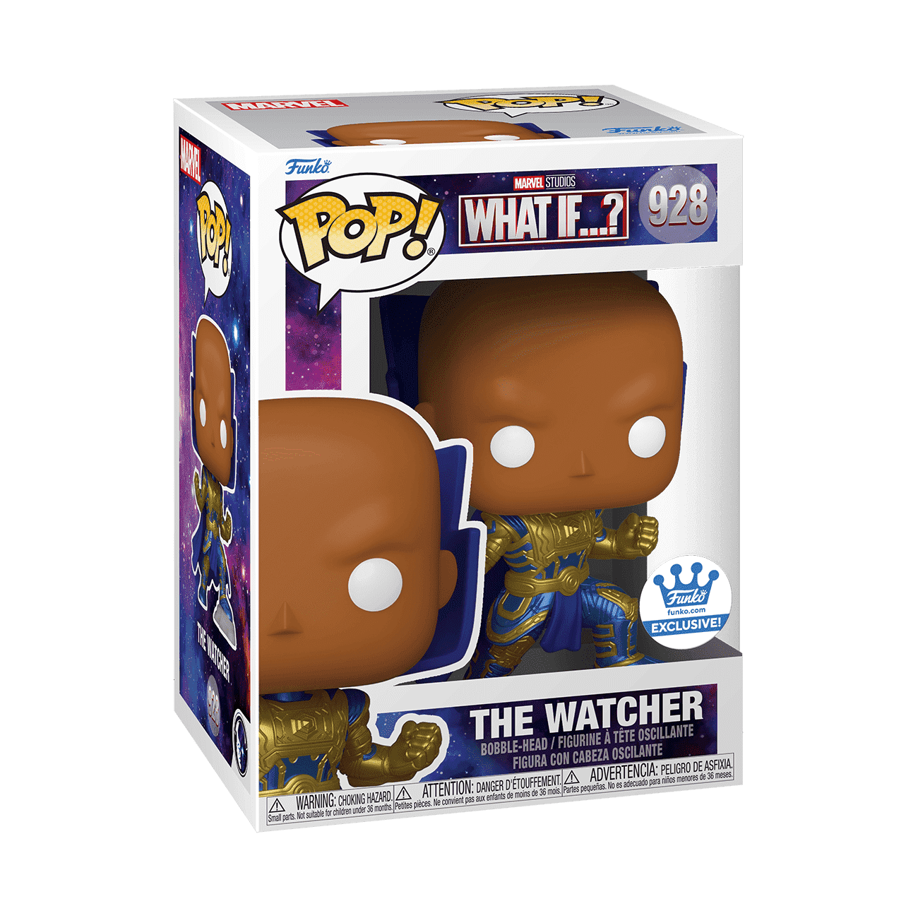 In the endless possibilities, venture to wonder and explore with Marvel Studios’ What If…? animated series. Collect this Funko-exclusive Pop! The Watcher to complete your What If…? set. Vinyl bobblehead is approximately 4.25 in (10.8 cm) tall.