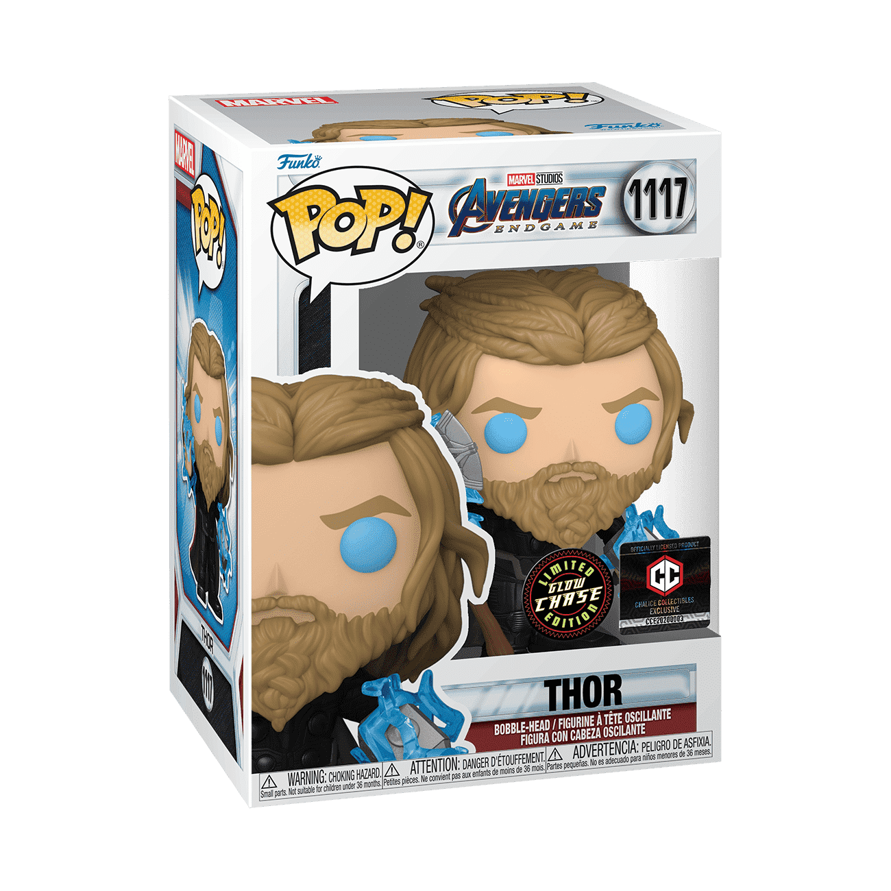 Electrify your Marvel collection with the exclusive Chalice Collectibles, Inc. glow-in-the-dark Pop! Thor from Avengers Endgame. There’s a 1 in 6 chance you might find the chase of Thor holding Stormbreaker and Mjolnir. Supercharge your Marvel set today! Vinyl bobblehead is approximately 3.98 in (10.1 cm) tall. Please note: We cannot accept requests for specific items. Chase variants are shipped at random. Receiving a chase with purchase is not guaranteed.