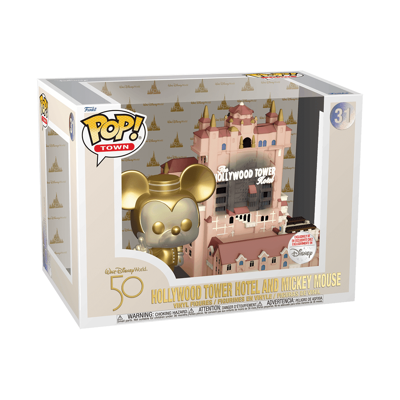 Celebrate 50 years of magic at the Walt Disney World Resort by commemorating one of its most trilling theme park attractions! The exclusive Pop! Hollywood Tower Hotel and Mickey Mouse transports you to a moment frozen in time. Dressed as a Hollywood Tower Hotel bellhop, the metallic gold Pop! Mickey points the way to elevated fun should you choose to drop in. Who will take the ride of a lifetime in your Disney parks collection? Vinyl figures are approximately 6-inches tall and 3.8-inches tall.