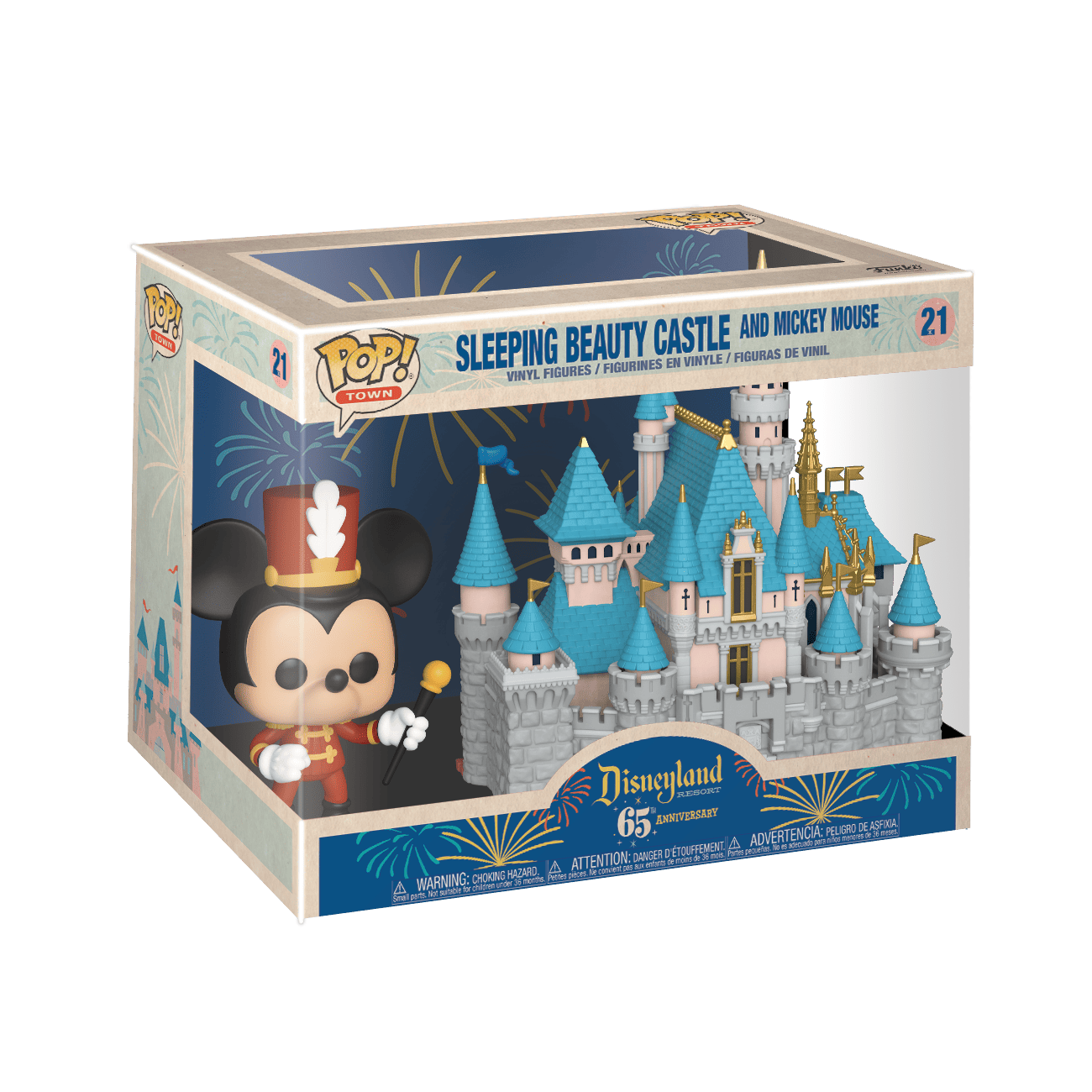 Bring the enchantment home with the Disneyland 65th Anniversary Pop! Town of the Sleeping Beauty Castle and Mickey Mouse. Dressed in his parade outfit, Pop! Mickey Mouse is ready to lead the festivities in your Disney collection. Vinyl figures are approximately 4.25-inches tall and 7-inches tall.