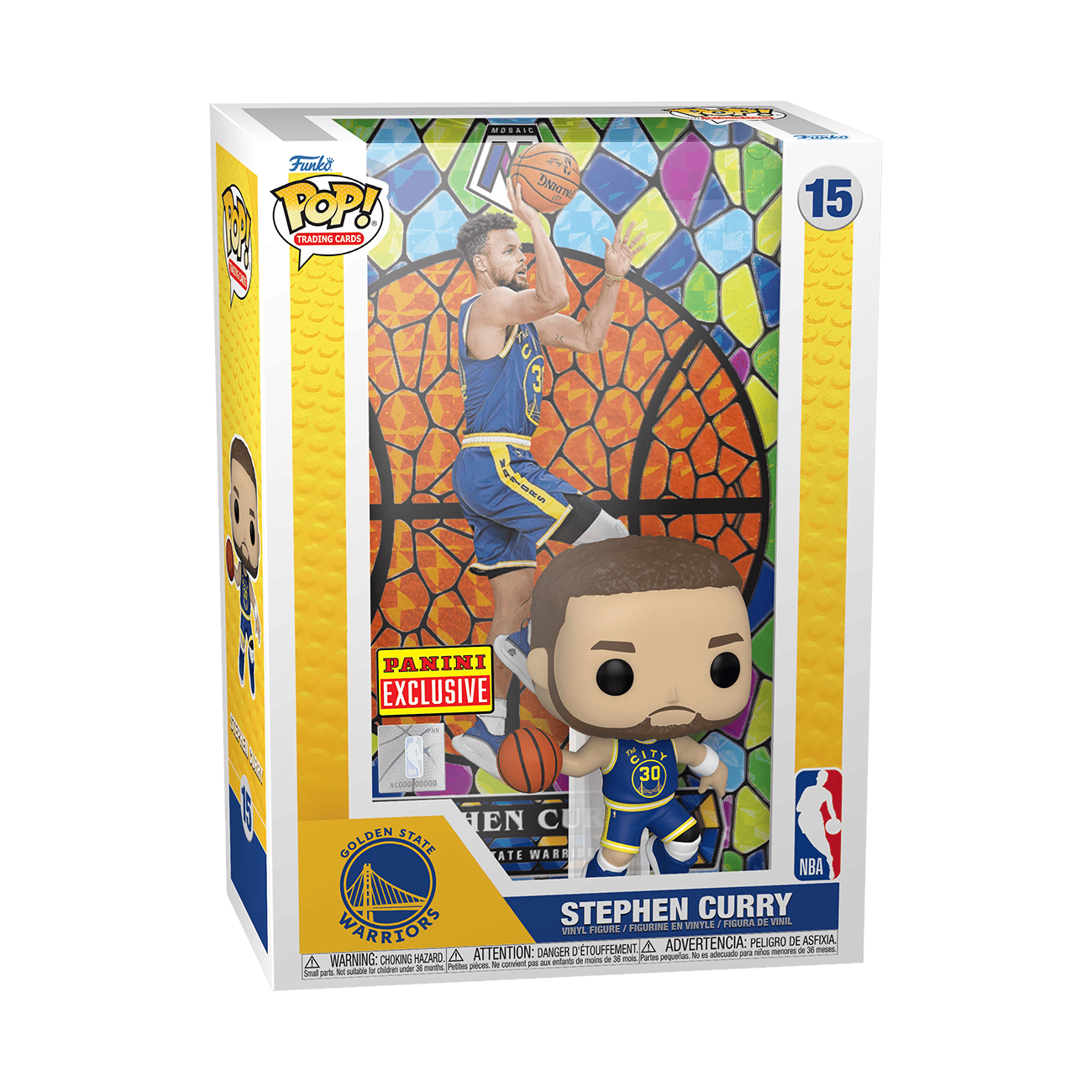 Commemorate an iconic sports trading card for your NBA collection with the Pop! Trading Card Stephen Curry. The collectible features a Pop! Stephen Curry figure, wearing his blue Golden State Warriors uniform, which matches the included mosaic trading card art. This exclusive collectible is the perfect addition to your Pop! Trading Cards collection and comes prepackaged in a protective case that can be hung on your wall!