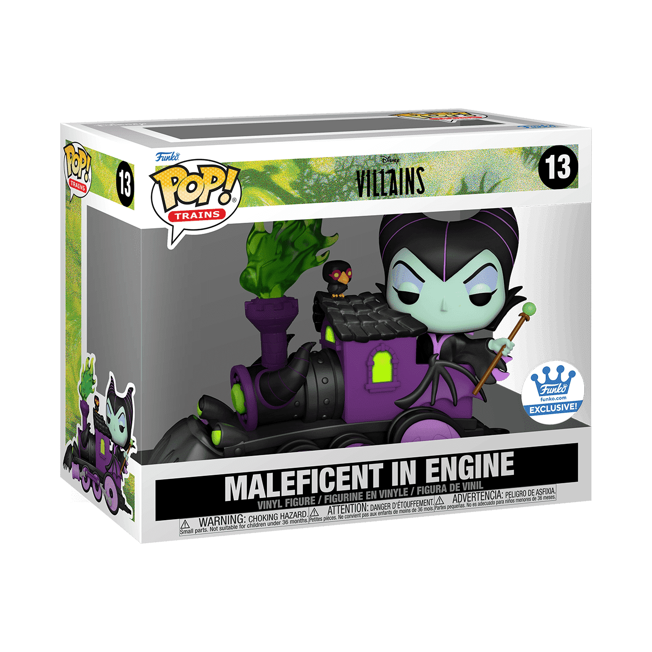 Green flames erupt from Maleficent's train engine car, narrowly avoiding Dante who's perched on the black roof tiles. With her staff in hand, Pop! Maleficent is conducting this menacing group, fighting tooth and wing for the top spot in your setup. Collect Funko exclusive Pop! Maleficent in Engine to lead your Disney Villains train. Vinyl figure is approximately 5.36-inches tall and 7.75-inches long.