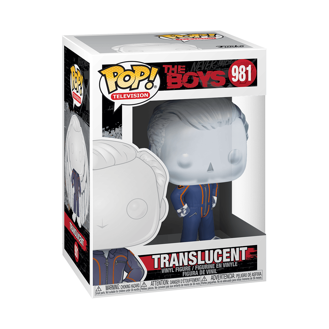 When superheroes are bought and owned by Vought International corporation, who will keep the heroes in check? The Boys are vigilantes with superpowers fighting to expose the corruption and falsehoods of the Vought Int. Seven "heroes". Bring home Pop! Translucent to be a hero, or perhaps a villain, in your collection of The Boys. Vinyl figure is approximately 4.15 in (10.5 cm) tall.