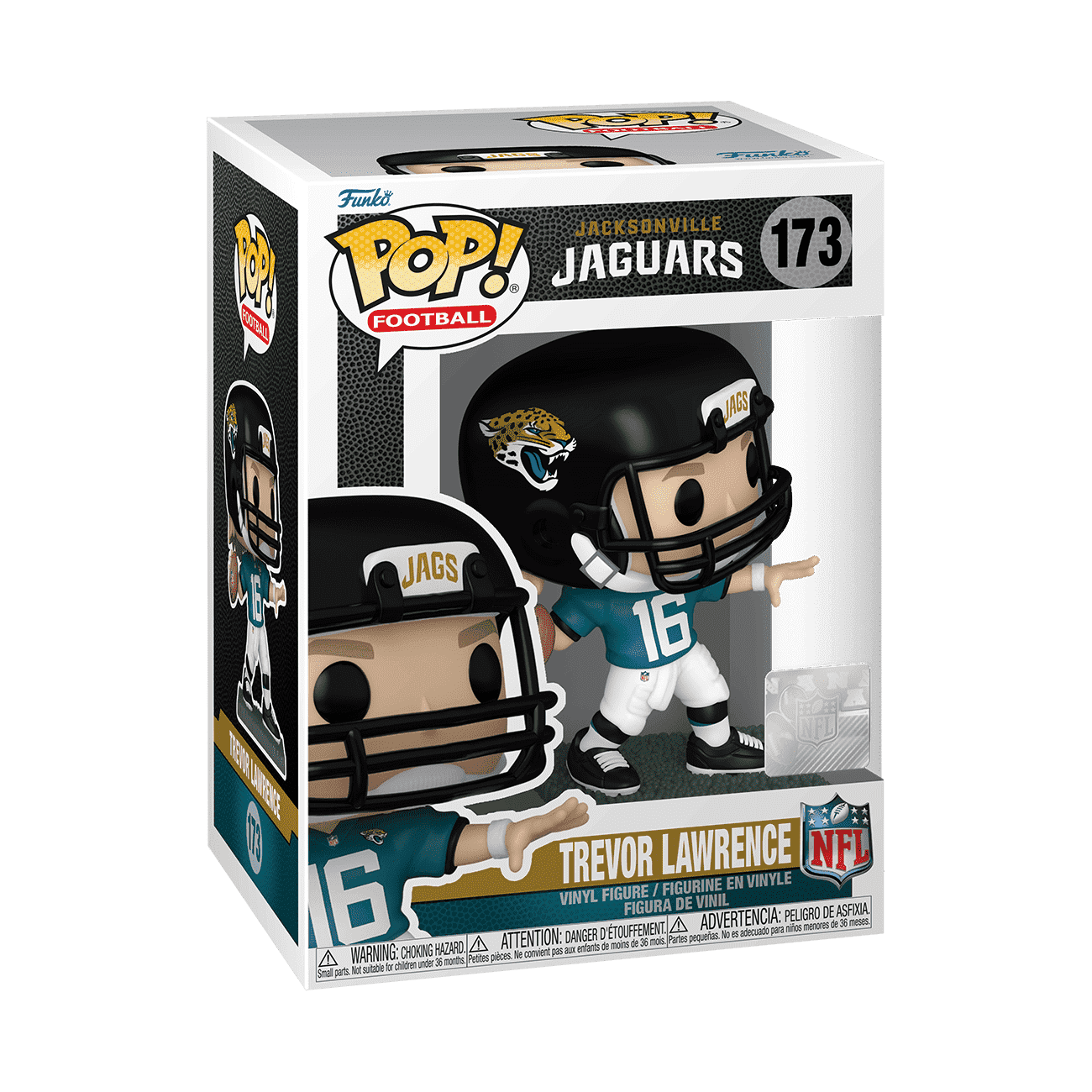 Take to the field with Pop! Trevor Lawrence as he scores a game-winning touchdown! Wearing his teal Jacksonville Jaguars jersey, Pop! Trevor Lawrence is ready to intercept your NFL collection. Vinyl figure is approximately 4.15 in (10.5 cm) tall.