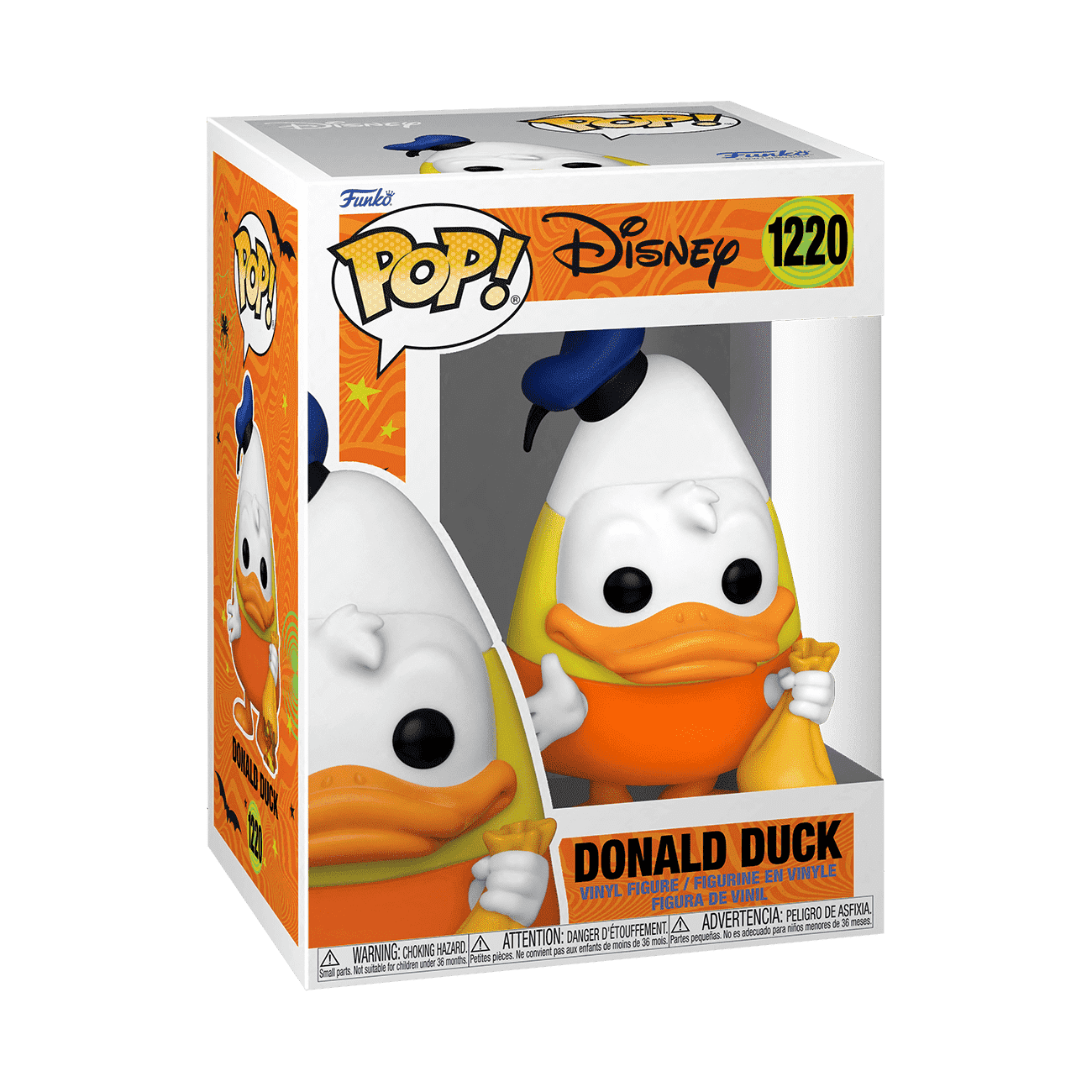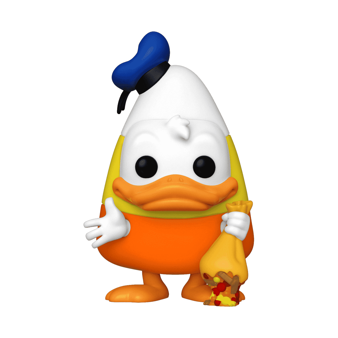 Aw, phooey! Pop! Donald Duck’s treat bag has burst open, but he’s still in the spirit of Halloween. Dressed as a delectable piece of candy corn, Pop! Donald Duck is ready to go trick-or-treating. Add him as a sweet treat to your Disney set. Vinyl figure is approximately 4.43 in (11.3 cm) tall.