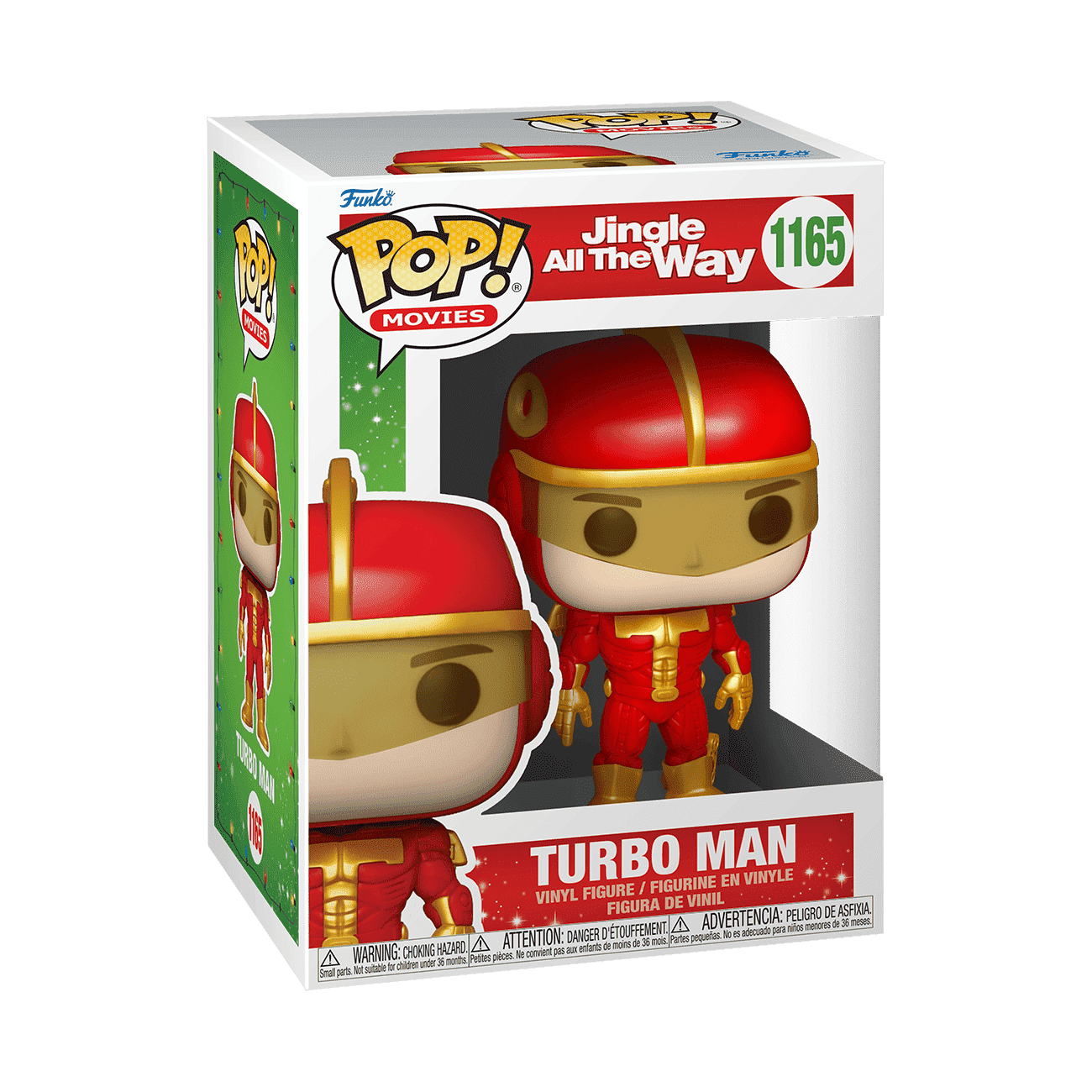 Beat the frenzy this year by getting your Jingle All The Way Pop! Turbo Man before the crowd gets them all. Complete your Jingle All The Way collection today! Vinyl figure is approximately 4.5 in (11.4 cm) tall.