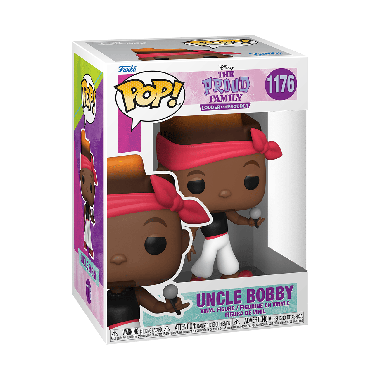Bobby Proud is back and louder than ever as a Proud Family Pop! figure! Pop! Uncle Bobby is wearing a red bandana and holding a microphone (as usual). Bring this key member of The Proud Family: Louder and Prouder home to your Disney collection for the ultimate family reunion. Vinyl figure is approximately 4.81 in (12.2 cm) tall.
