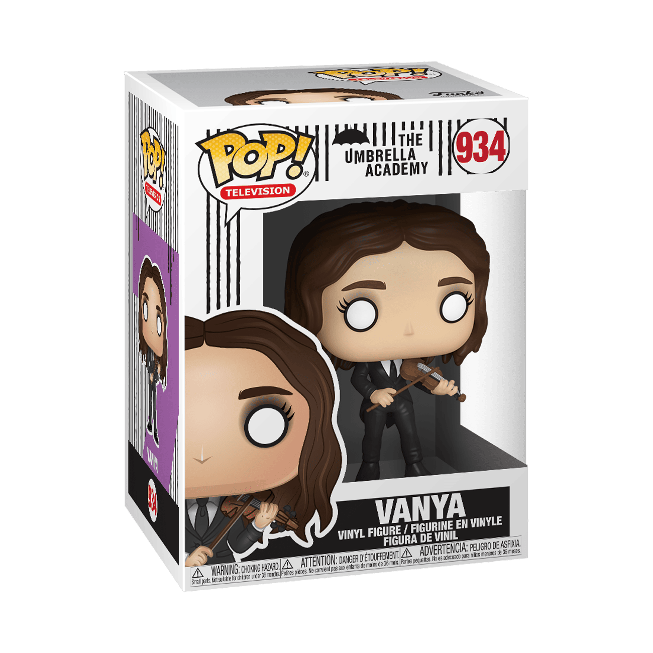 Adopted by Sir Reginald Hargreeves, Vanya and her six other adopted siblings were trained to use their abilities to save the world. Adopt Vanya into your Umbrella Academy collection as Pop! Vanya. There's a 1 in 6 chance you may find the ghostly looking chase variant of Vanya. Vinyl figure is approximately 3.75 in (9.5 cm) tall. Please note: Chase variants are shipped at random. Receiving a chase with purchase is not guaranteed.