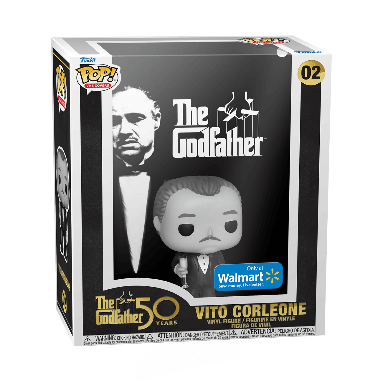 Raise a glass to celebrate the 50th anniversary of Francis Ford Coppola’s The Godfather with the Pop! Vito Corleone and VHS Cover set. The exclusive Pop! VHS Covers of The Godfather features a black-and-white Pop! of Vito Corleone, holding a glass of champagne. A touch of red from the rose on the lapel of his tuxedo stands out against the black-and-white color scheme. Pop! Vito Corleone comes pre-packaged in a premium protector case along with the VHS cover art. Expand your Pop! Movies collection today with the exclusive Pop! VHS Covers!