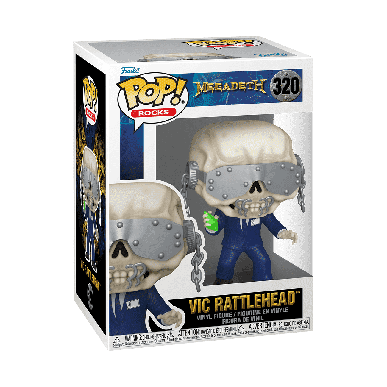 Pop! Vic Rattlehead™, mascot of American thrash metal band, Megadeth, is here to take the stage and shake up your music collection! Reunite Pop! Vic Rattlehead™ with the band in your Pop! Rocks collection. Vinyl figure is approximately 3.75 in (9.5 cm) tall.