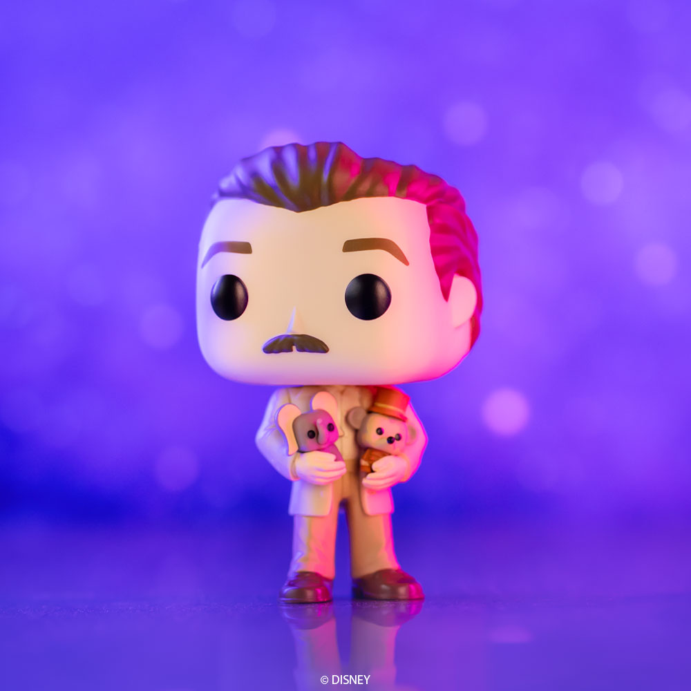 Bring a piece of Disney magic home with the man who started it all. Celebrate Disney’s 100th Anniversary with this charming, sepia Pop! Walt with Dumbo and Timothy. Vinyl figure is approximately 4 in (10.2 cm) tall.