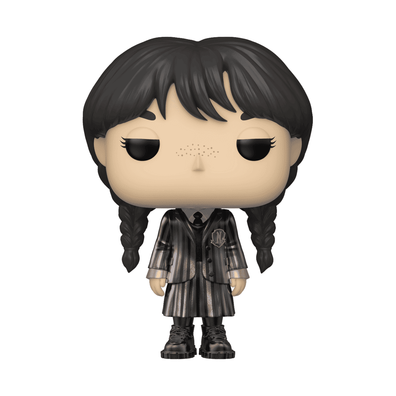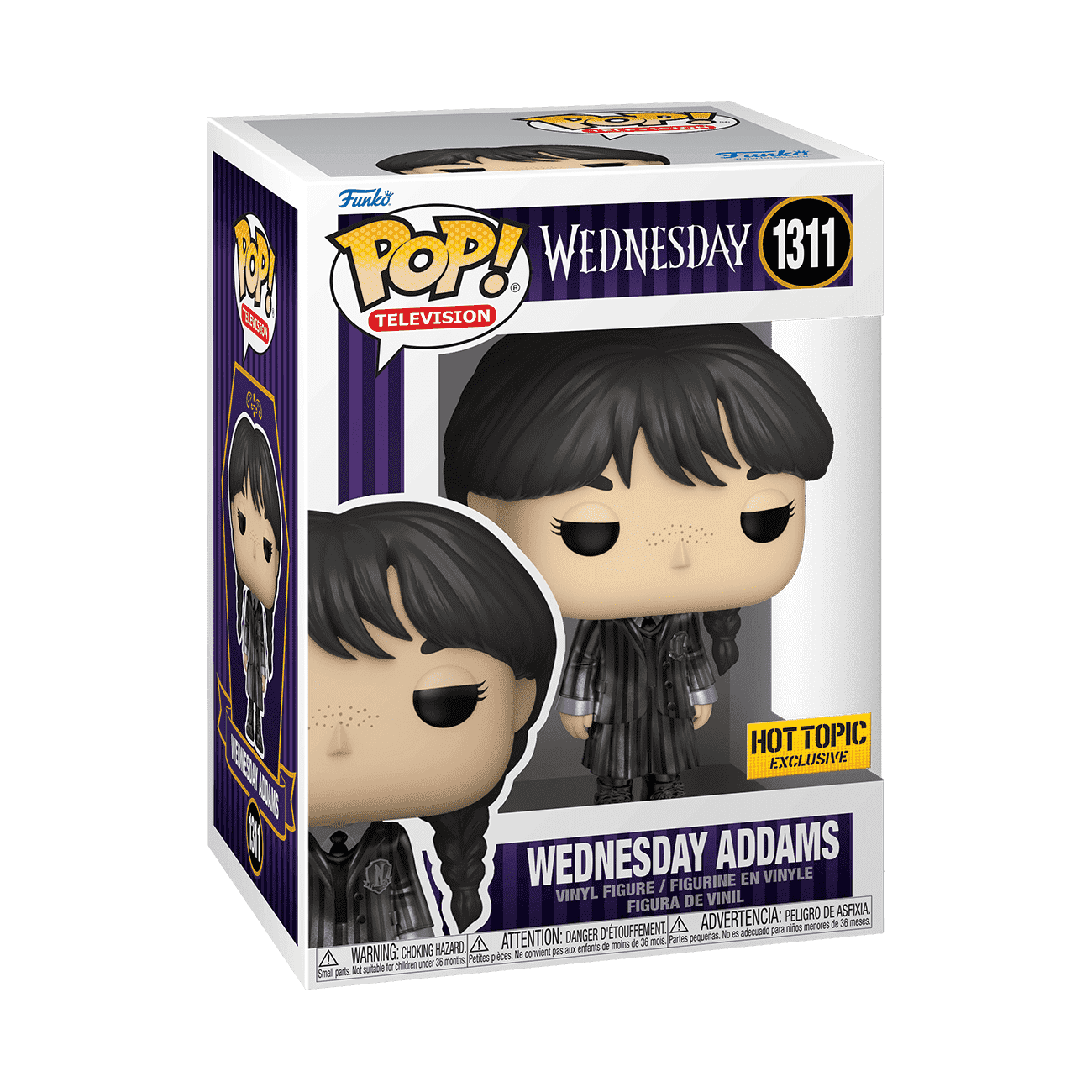 A terrifyingly terrific exclusive metallic Pop! Wednesday Addams wants to stalk your Pop! Television family. Join her on delightfully twisted adventures and have fun recreating the mysteries and mayhem of the Netflix Wednesday series at home. Snap to it and revive your favorite memories of this character in Pop! form. Vinyl figure is approximately 3.48 in (8.8 cm) tall.
