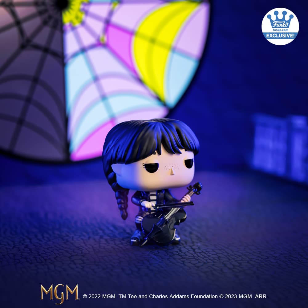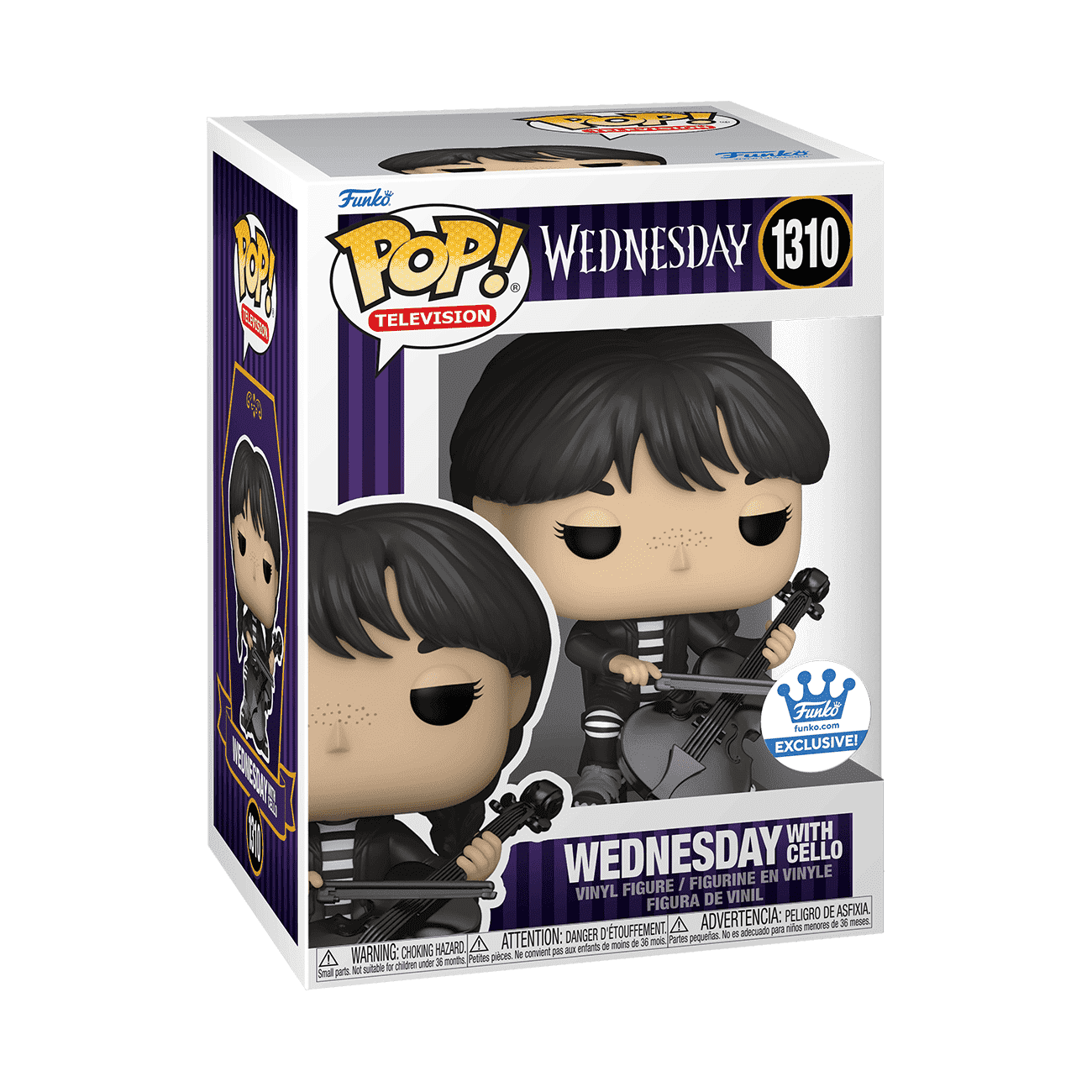 A terrifyingly terrific Funko exclusive Pop! Wednesday Addams with Cello wants to stalk your Pop! Television family. Join her on delightfully twisted adventures and have fun recreating the mysteries and mayhem of the Netflix Wednesday series at home. Snap to it and revive your favorite memories of this character in Pop! form. Vinyl figure is approximately 3.48 in (8.8 cm) tall.