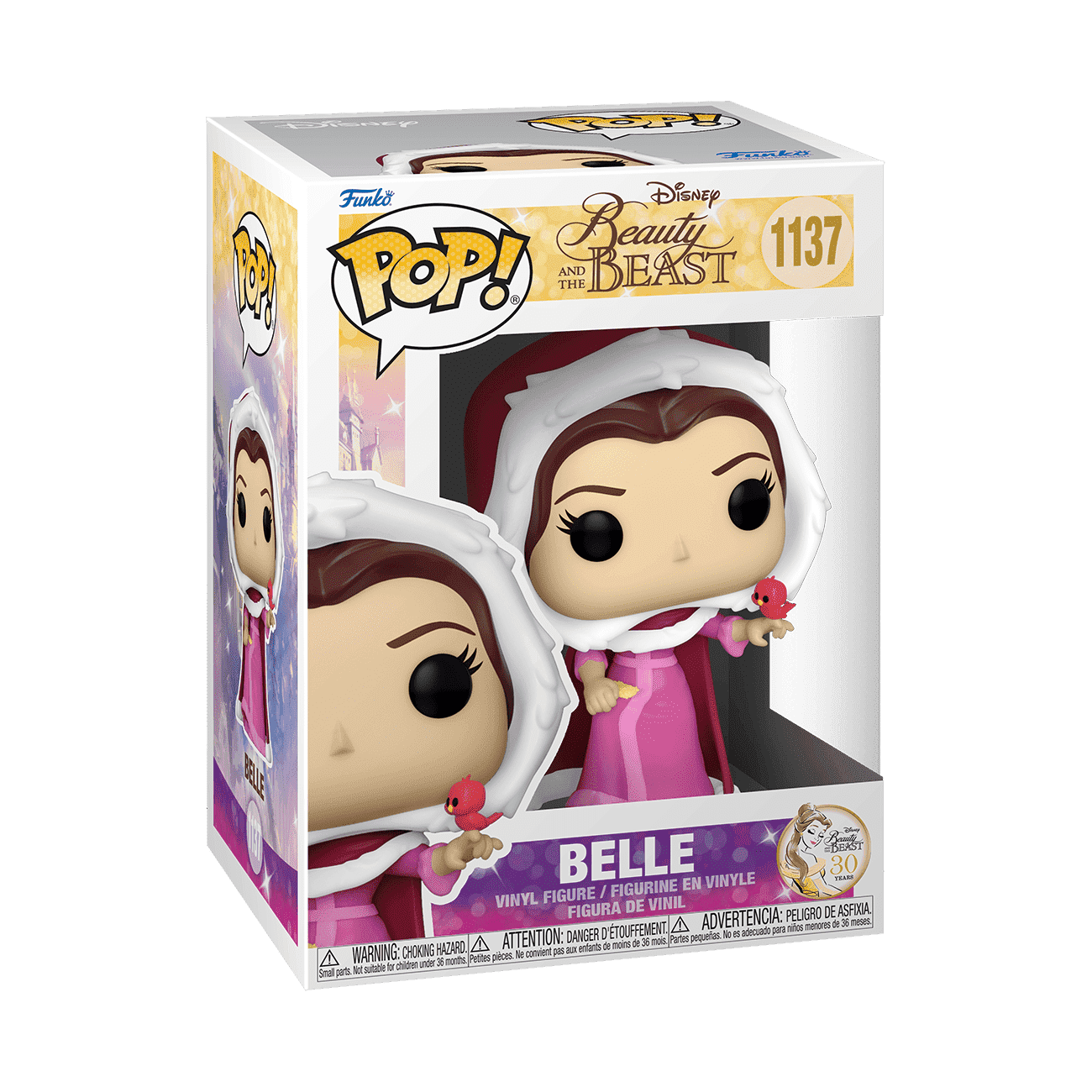 Celebrate the 30th Anniversary of the release of Disney's The Beauty and the Beast with Pop! Belle (in winter cloak). Turn the tables and have all The Beauty and the Beast 30th Anniversary Pop! collection be guests in your Disney display. Vinyl figure is approximately 4.15 in (10.5 cm) tall.