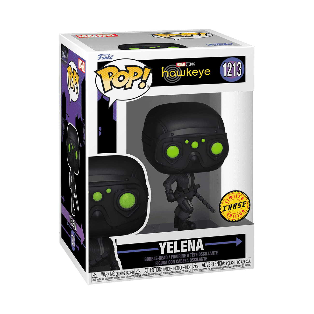 Top off this holiday season with a spectacular bow. Collect Pop! Yelena and complete your Marvel Hawkeye set. There's a 1 in 6 chance you may find the chase variant of her with her mask on. Vinyl bobblehead is approximately 3.84 in (9.8 cm) tall. Please note: Chase variants are shipped at random. Receiving a chase with purchase is not guaranteed.