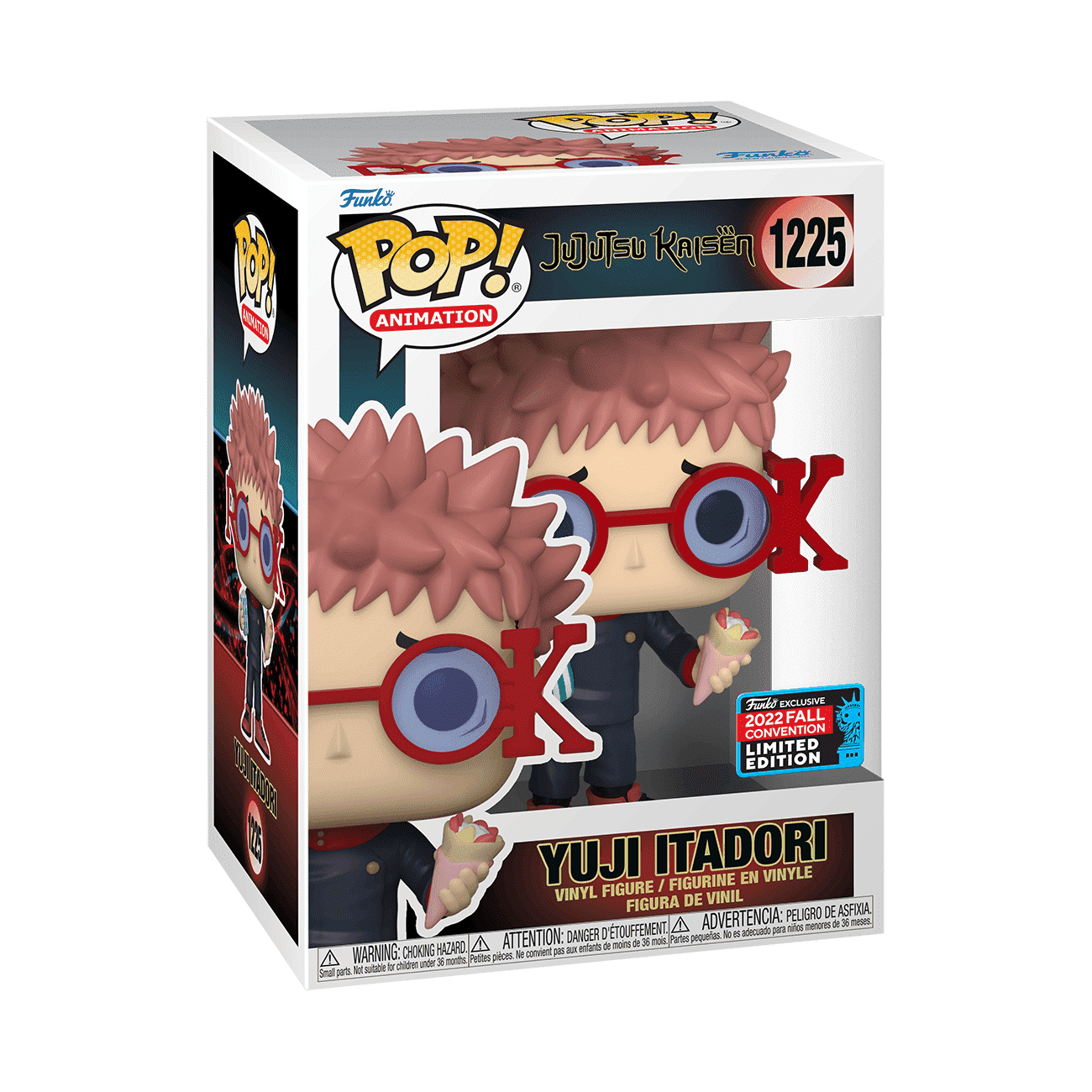 Get your hands on Pop! Yuji Itadori, who is rocking a pair of Rook glasses. This 2022 New York Comic-Con exclusive Pop! of Yuji Itadori also has him with his hands full, holding snacks. When he’s not busy eating or watching TV, he’s ready to fight alongside his fellow classmates to become the next generation of jujutsu sorcerers. Pop! Itadori is looking forward to growing his sorcery and combat skills in your Jujutsu Kaisen collection. Vinyl figure is approximately 4.47 in (11.4 cm) tall.
