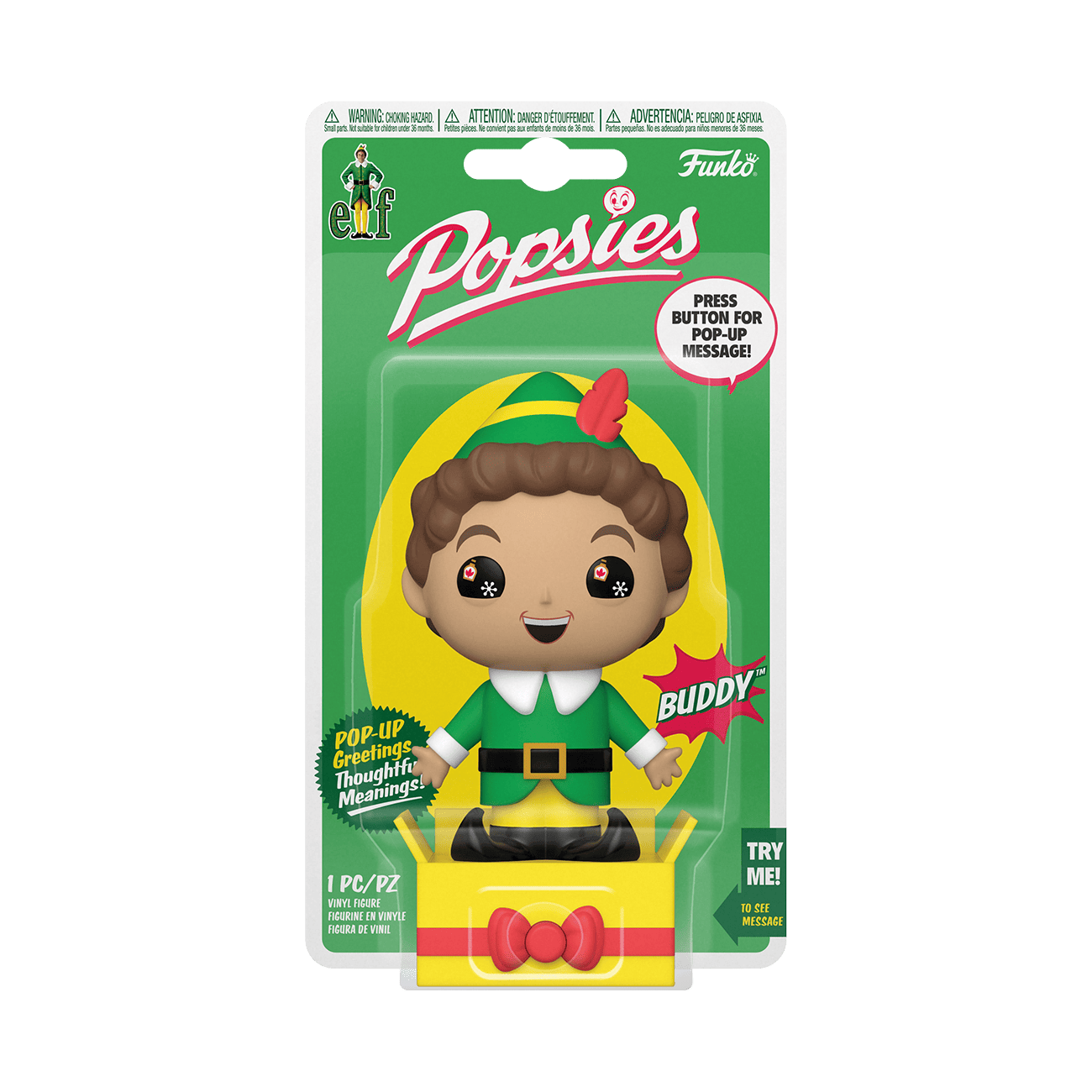 Surprise a friend or loved one with open arms and a pop-up greeting with Popsies, the new collectible greeting by Funko! Press the center of the bow and the special message appears above Buddy as he holds his arms out wide. You can even write who it's from and for with a permanent marker on the present's label. Share a sentiment and a smile with an awesome Popsies Buddy from Elf Vinyl collectible greeting is approximately 4.75 in (12.1 cm) tall.