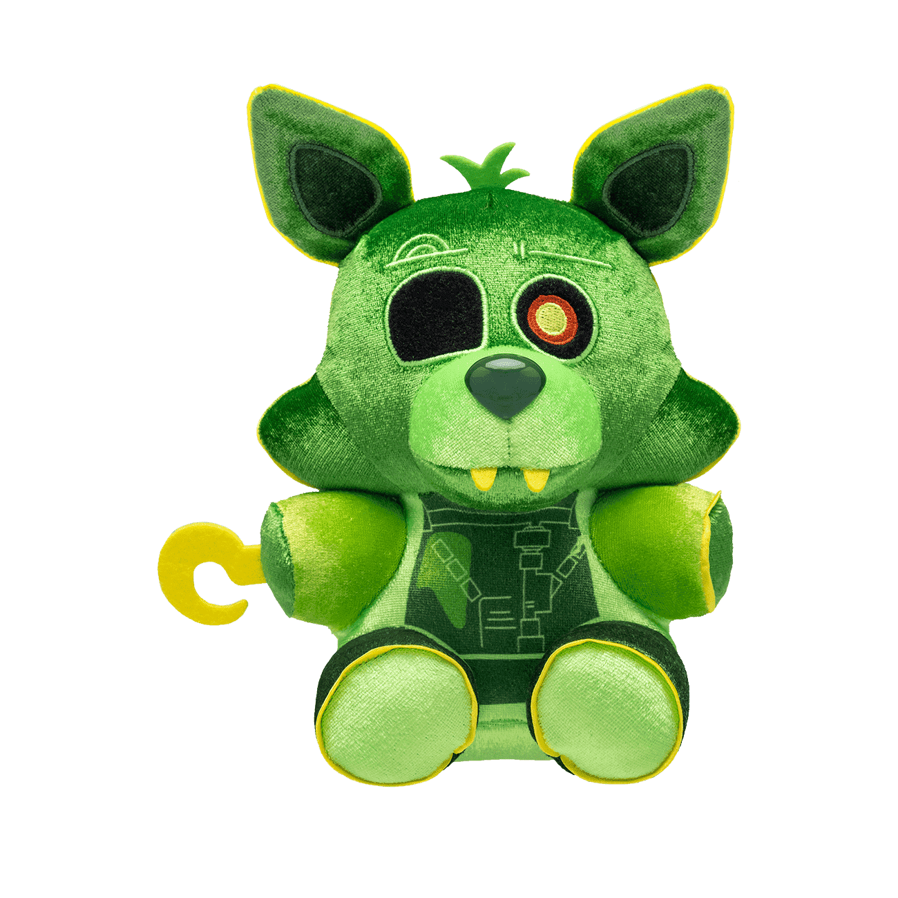 Five Nights at Freddy's: Special Delivery has unleashed a whole new range of terror with a digitized neon twist. Will your FNAF collection survive after the Radioactive Foxy Funko Plushie steps amidst the other animatronic characters? Collectible plush is approximately 7 in (17.8 cm) tall.