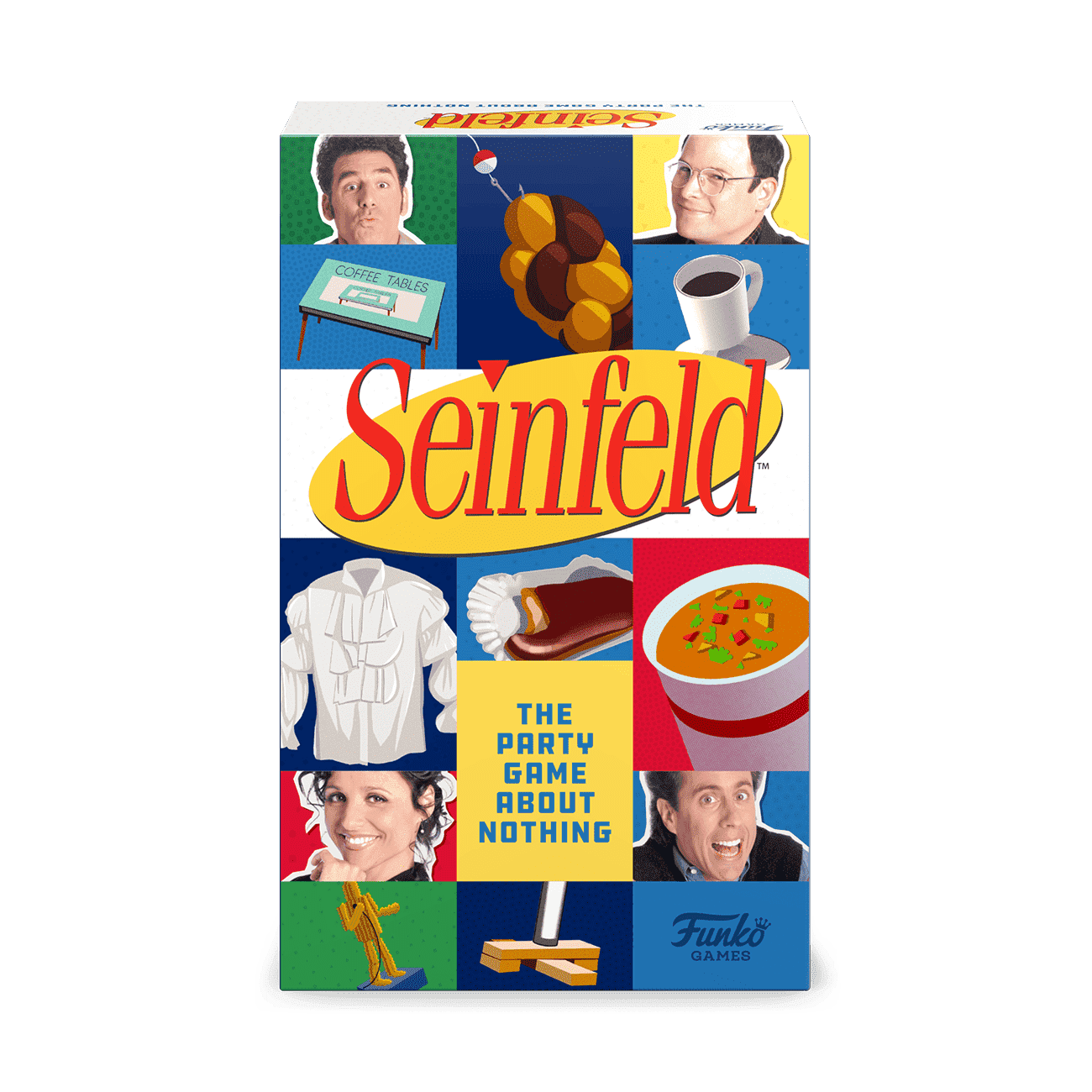 Celebrate the hit ’90s TV show in this hilarious head-to-head party game that will challenge what you know about the “show about nothing.” Score points by answering trivia questions, charades-style acting, and guessing who said or did some of the most hilarious bits ever aired on television! You’ll even get a chance to fish for the marble rye like George and Jerry did! It’s hundreds of Seinfeld-celebrating activities for outrageous fun!