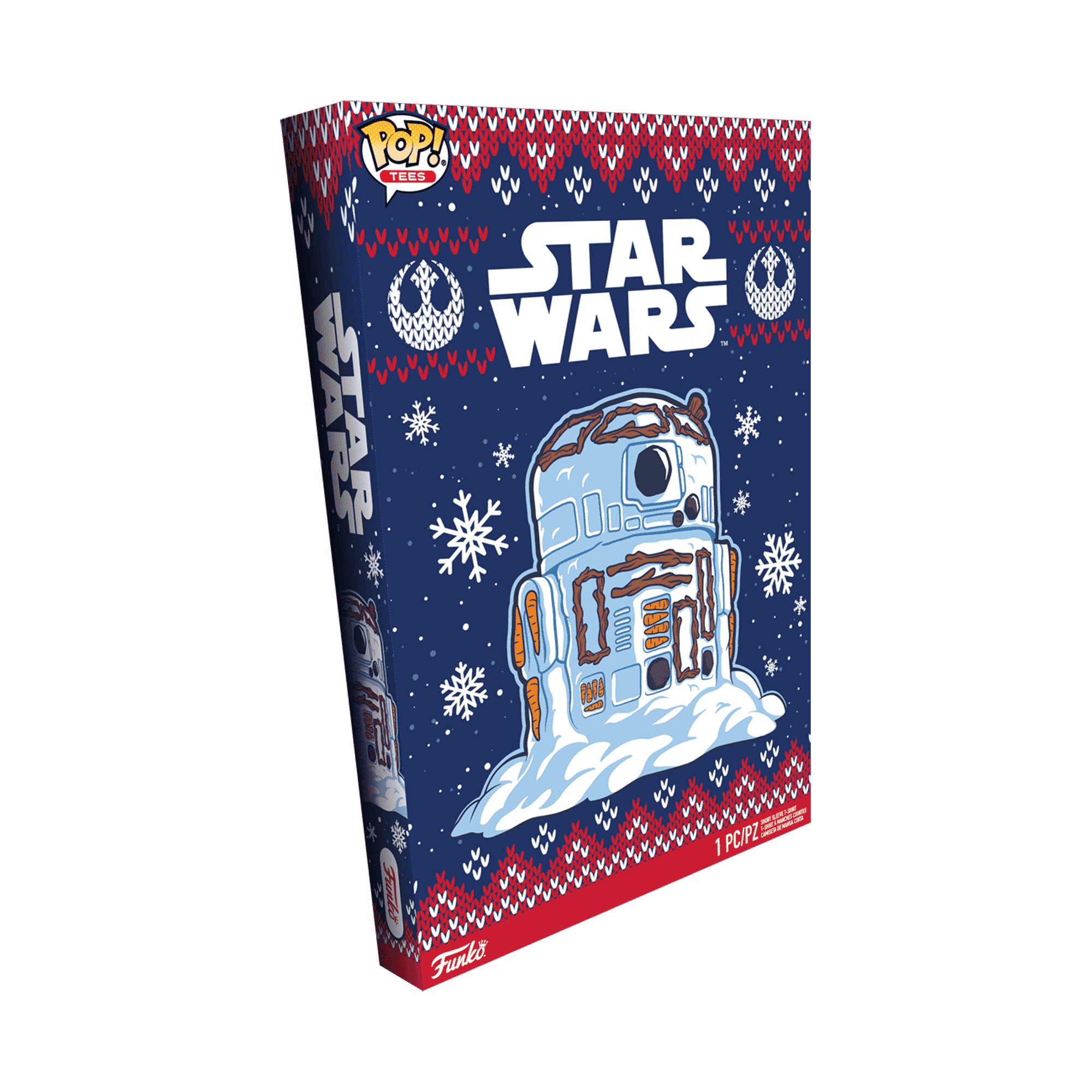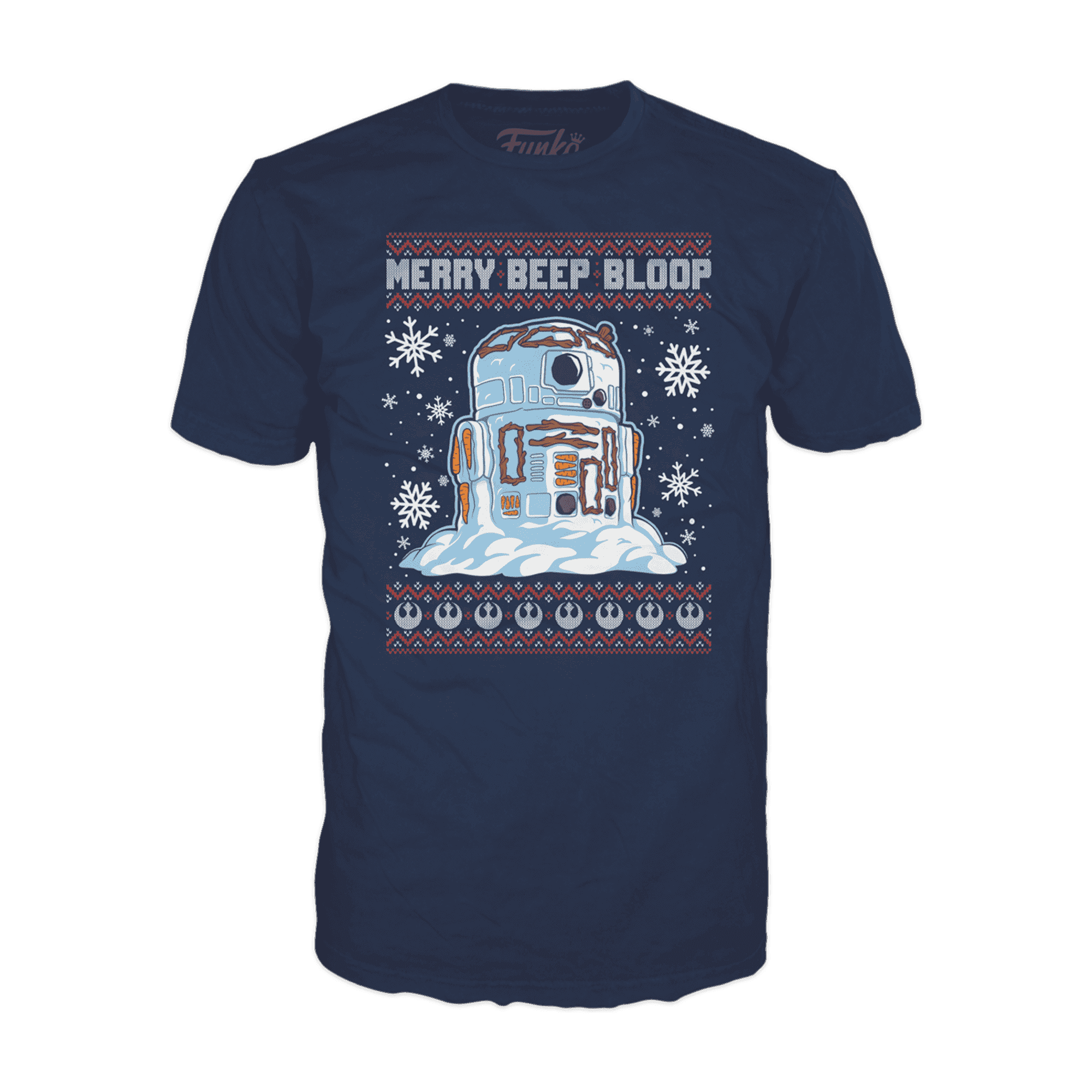 Spark intergalactic holiday fun in comfort and style with this R2-D2 Snowman Pop! Boxed Tee! On the front of this short-sleeved tee, Pop! R2-D2 shimmers, surrounded by white snowflakes, with carrots and twigs as finishing touches for the limbs and armor. The phrase “Merry Beep Bloop” is printed in white above this adorable snow-droid. This navy, crew neck tee is perfect for celebrating the season or for showing off your Star Wars™ pride in your collection and on the go!