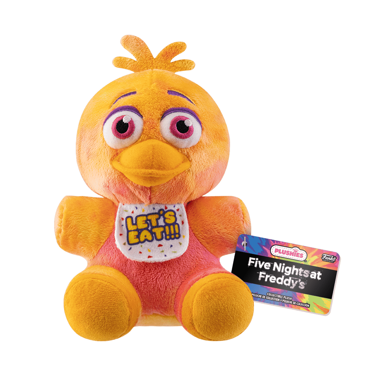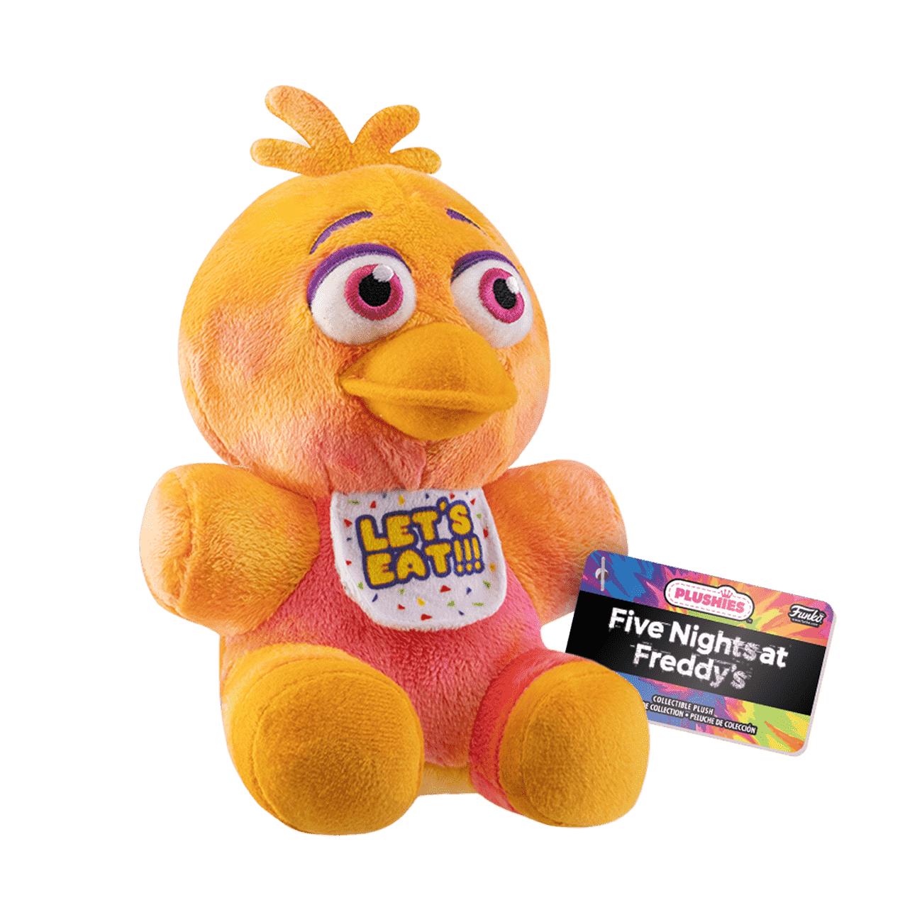 Survive the night at Freddy Fazbear’s Pizza with Five Nights at Freddy’s Funko Plush Tie-Dye Chica. Tie-Dye Chica is an adorable plush figure, ready with her arms open wide for a big hug. Catch her before she moves! Collectible plush is approximately 7 in (17.8 cm) tall.