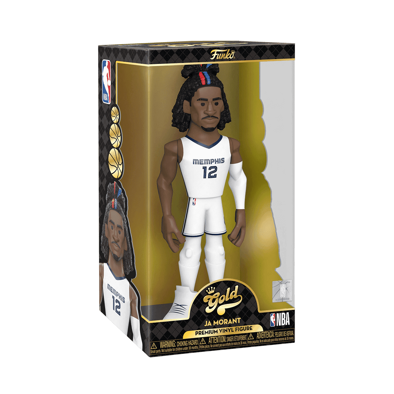 Score a slam dunk for your National Basketball Association collection with the new Funko GOLD Ja Morant of the Memphis Grizzlies. This 12-inch tall collectible of Ja Morant has him dressed in his white home uniform.