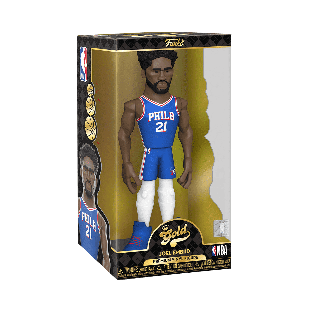 Score a slam dunk for your National Basketball Association collection with the new Funko GOLD Joel Embiid of the Philadelphia 76ers. This 12-inch tall collectible of Joel Embiid has him dressed in his blue home uniform.