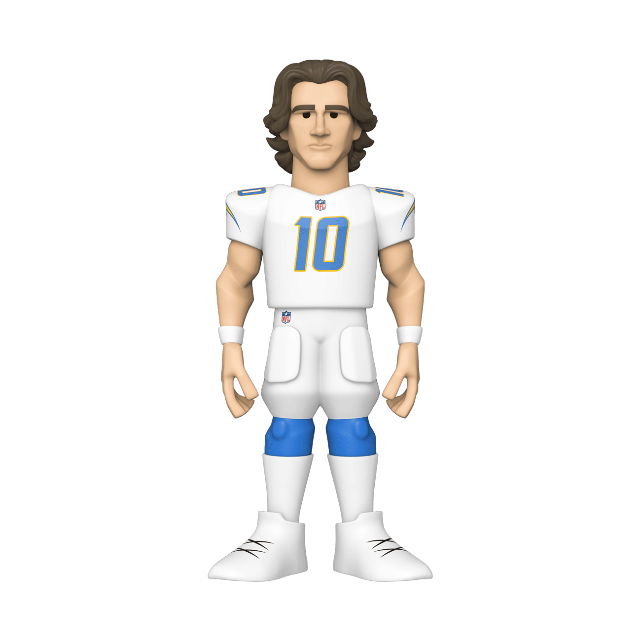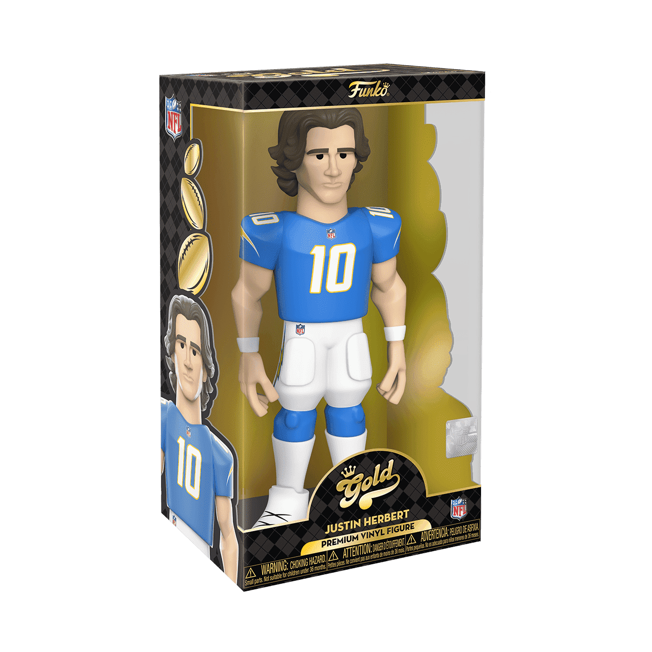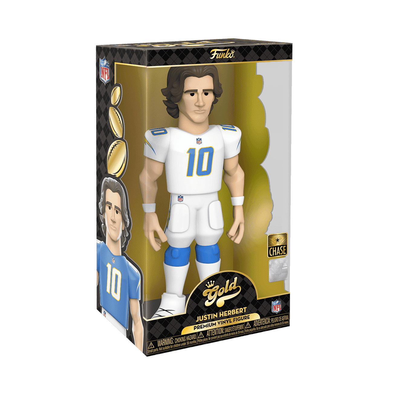 Score a touchdown for your National Football League collection with the new Funko GOLD™ 12” NFL Justin Herbert from the Los Angeles Chargers. This 12-inch tall collectible of Justin Herbert has him dressed in his powder blue jersey. There’s a 1 in 6 chance you may find the chase of Justin Herbert in his white jersey. GOLD is the perfect way to commemorate some of your favorite NFL players in your collection, and each figure comes in a sleek, display-ready box that is easy to stack with other GOLD collectibles. Vinyl figure is 12-inches tall.
