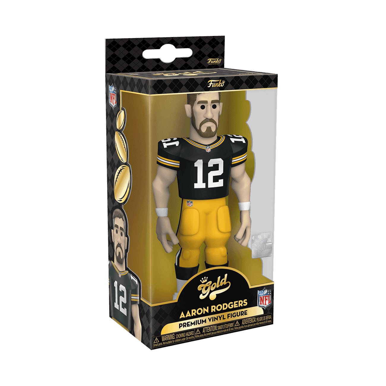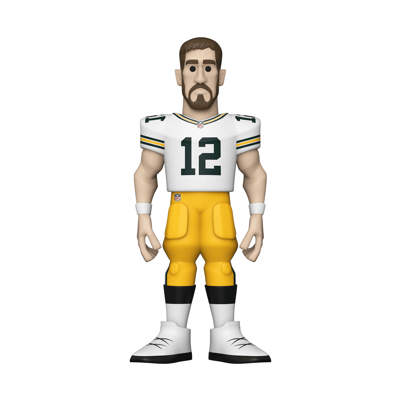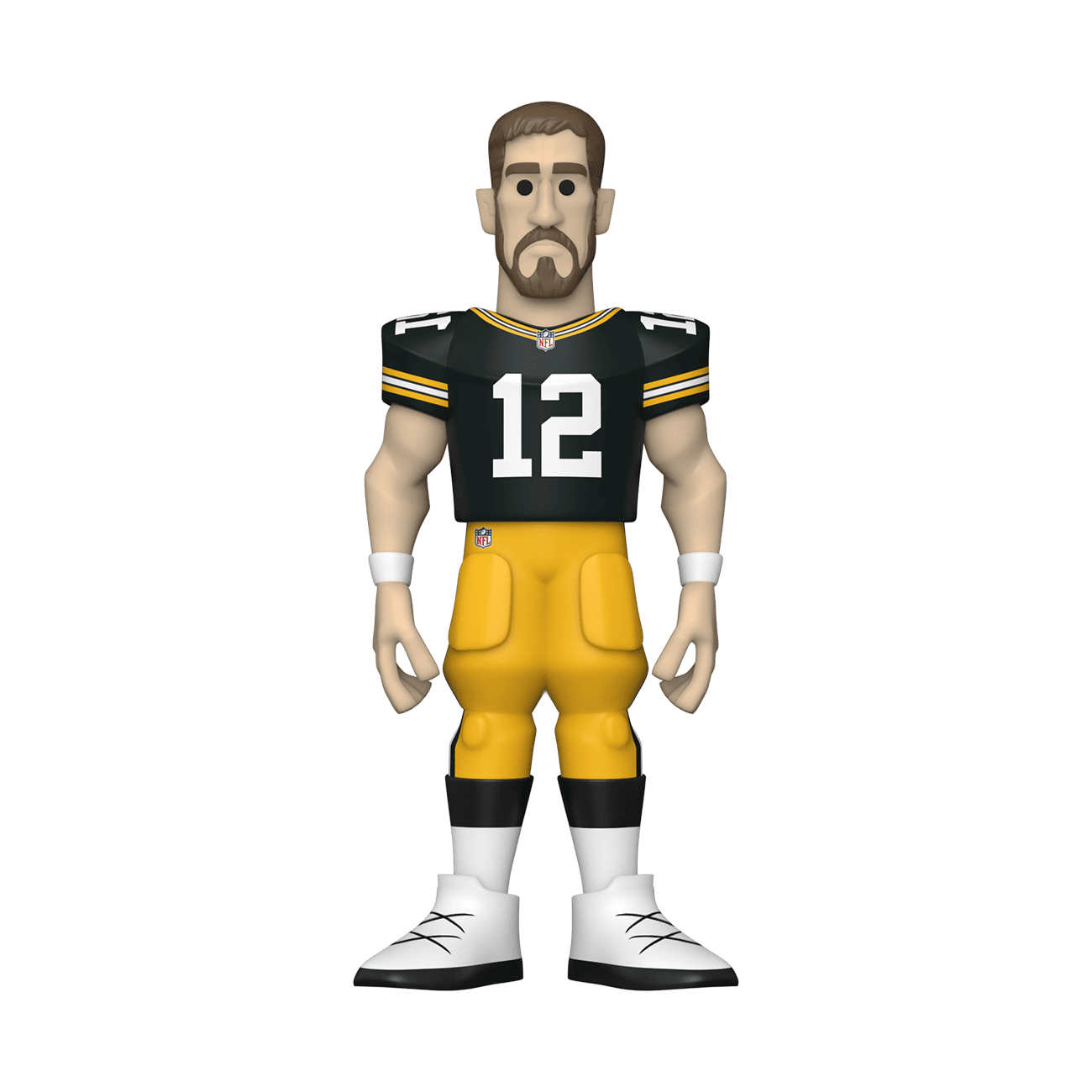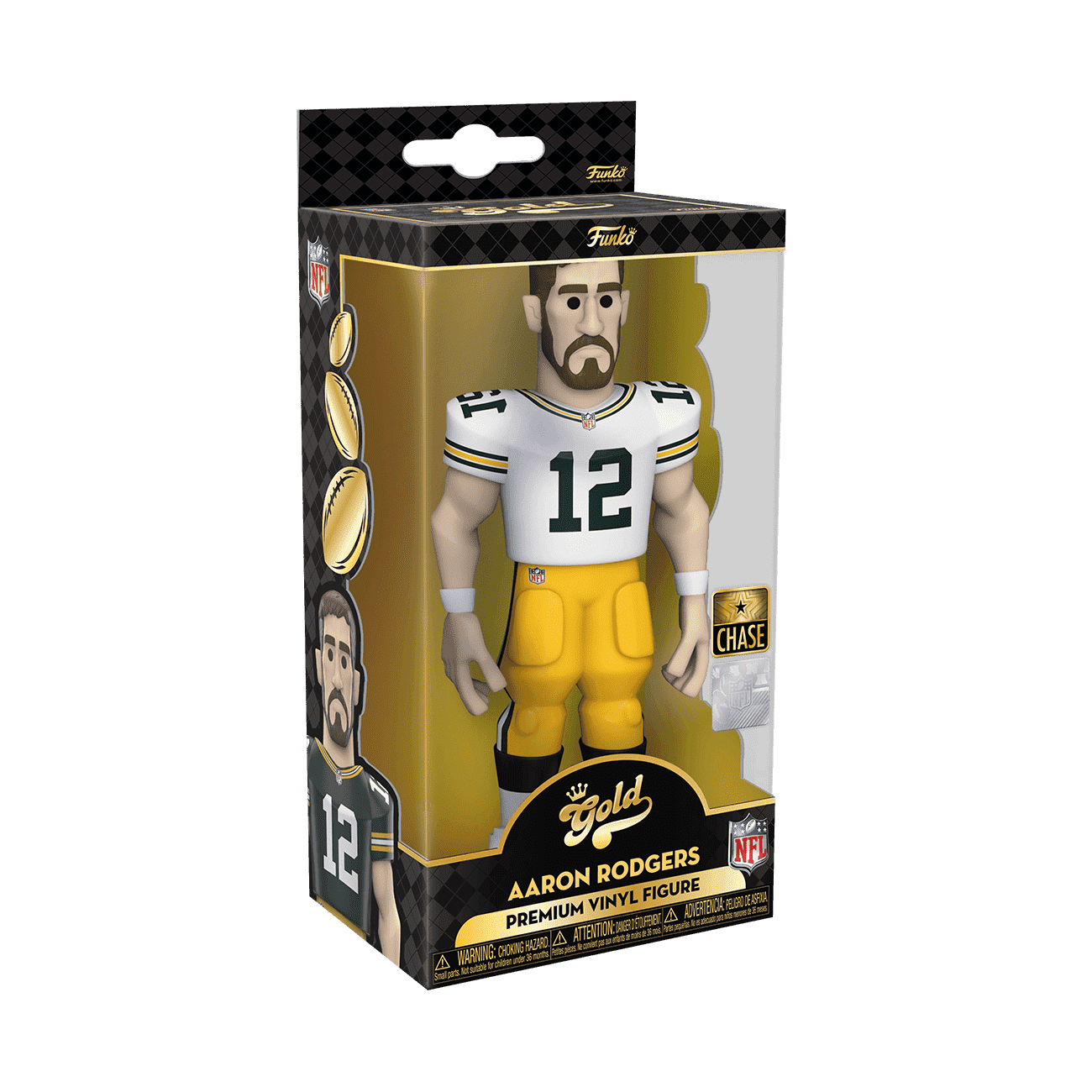 Score a touchdown for your National Football League collection with the new Funko GOLD Aaron Rodgers premium vinyl figure. This 5-inch tall collectible of Aaron Rodgers has him dressed in his home game uniform. GOLD is the perfect way to commemorate some of your favorite NFL players in your collection, and each figure comes in a sleek, display-ready box that is easy to stack with other GOLD collectibles. There’s a 1 in 6 chance you may find the chase variant of Aaron Rodgers in his away game uniform. Vinyl figure is 5-inches tall.