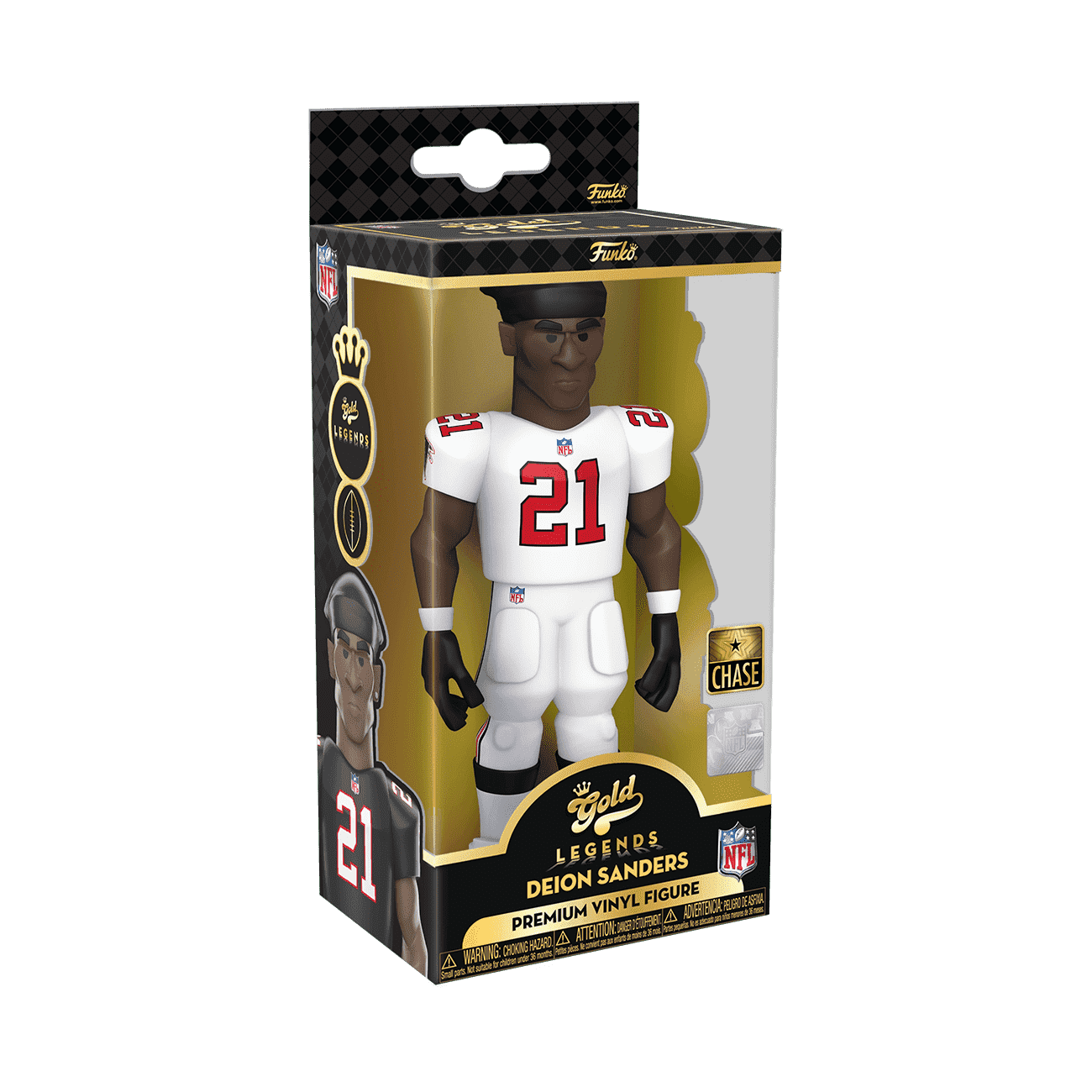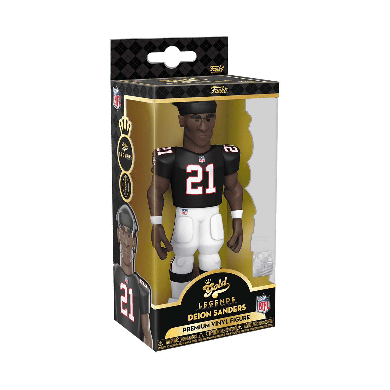 Score a touchdown for your National Football League collection with the new GOLD Deion Sanders premium vinyl figure. This 5-inch tall collectible of Deion Sanders has him dressed in his white Atlanta Falcons uniform.