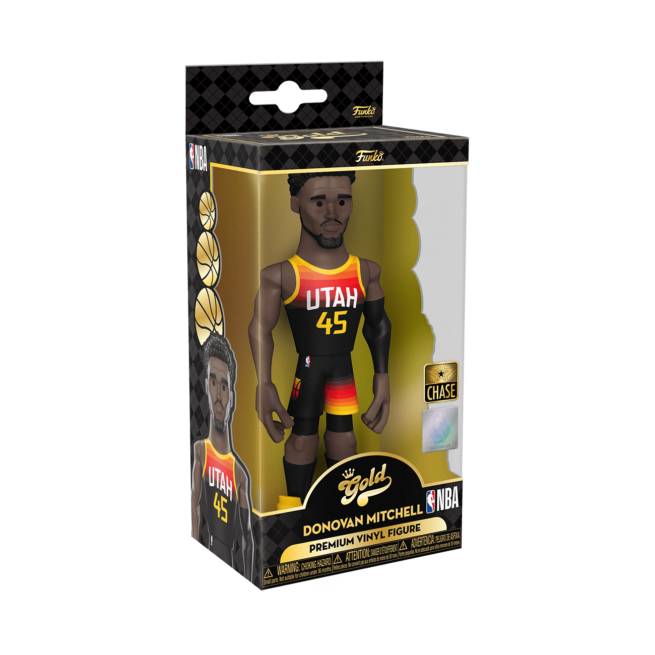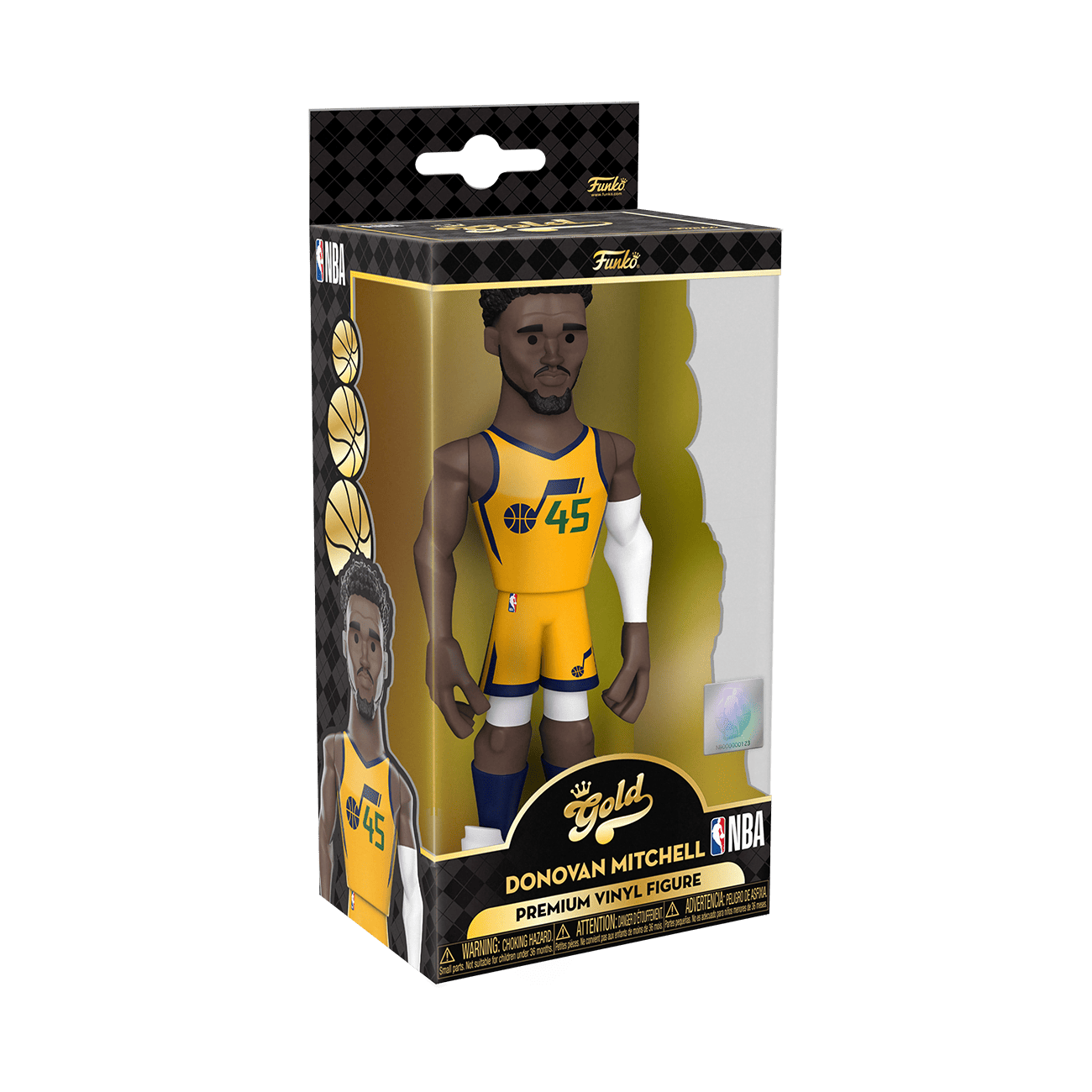 Score a slam dunk for your National Basketball Association collection with the new Funko GOLD Donovan Mitchell premium vinyl figure. This 5-inch tall collectible of Donovan Mitchell has him dressed in his gold Utah Jazz uniform. GOLD is the perfect way to commemorate some of your favorite NBA players in your collection, and each figure comes in a sleek, display-ready box that is easy to stack with other GOLD collectibles. There’s a 1 in 6 chance you may find the chase variant of Donovan Mitchell in his black Jazz away game uniform. Vinyl figure is 5-inches tall.